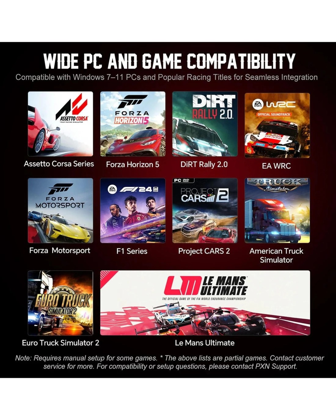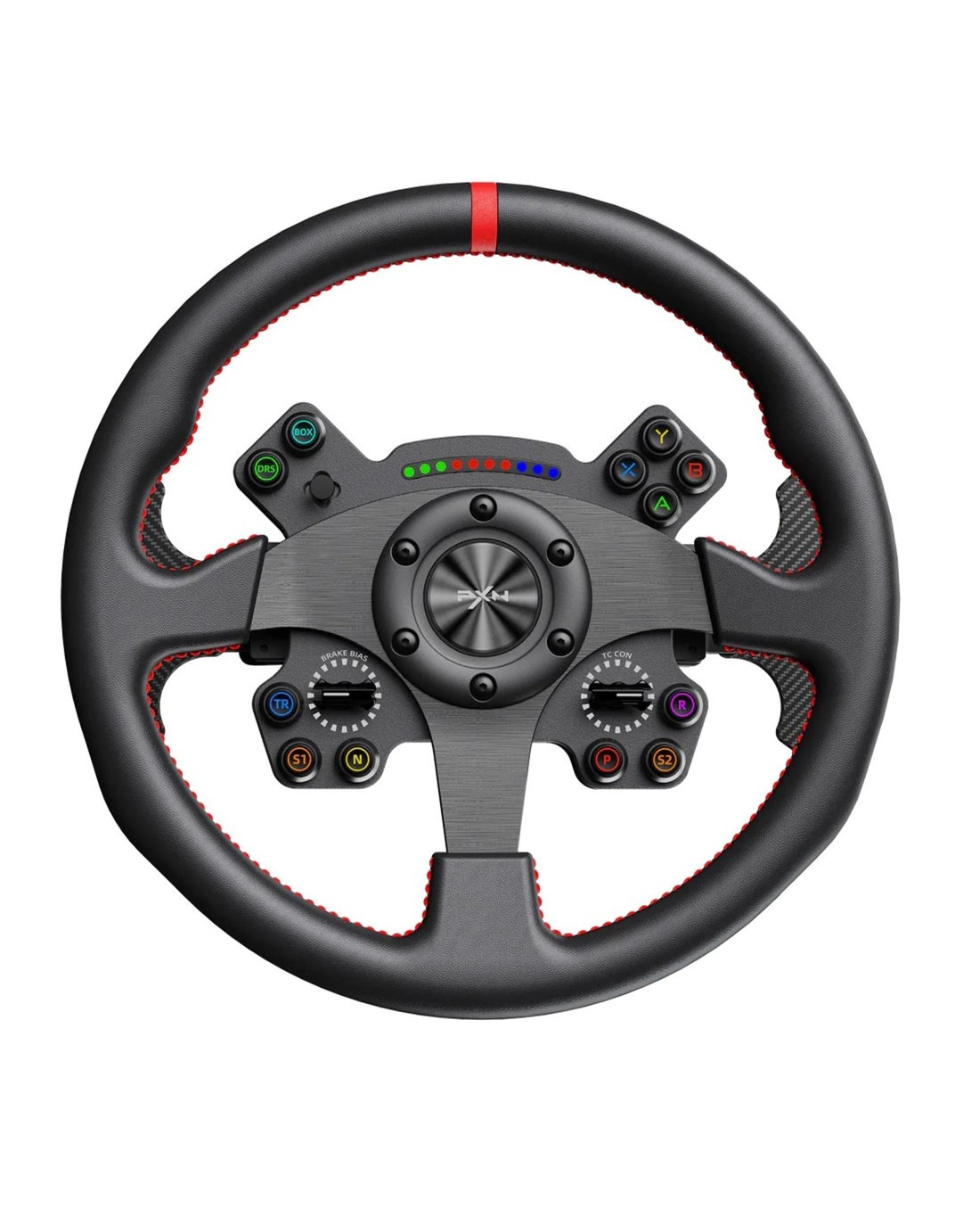 W CS R2 Racing Wheel & Compatibility: The W CS R2 is a high-performance PC racing wheel with a motorsport-inspired C-shape design, fully compatible with VD10 direct drive bases. Ideal for PC racing games like ETS2, WRC. Supports Windows 7-11. Motorsport-Grade Design & Comfort: This 13-inch (33cm) gaming wheel features a solid aluminum alloy internal structure, wrapped in premium microfiber leather for a professional, comfortable grip. Balanced weight and ergonomic shaping make it ideal for both endurance racing and sprint formats. Advanced Controls for Competitive Racing: Equipped with 13 programmable buttons, 2 rotary encoders, 1 joystick, and 4 precision-engineered paddle shifters—2 magnetic for crisp shifts and 2 analog linear paddles ideal for clutch or handbrake functions. The control layout is designed for maximum flexibility and real-time adaptability. RGB LED Telemetry Strip:Includes a customizable RGB LED RPM indicator with 10 addressable lights that react to real-time speed and shift points—giving players immersive, real-time feedback during gameplay. Features the quick-release hub for rapid, secure mounting to PXN VD-series bases. Not compatible with non-PXN systems. Quick-Release Mount & Software Support: Package includes W CS R2 wheel and manual. Note: Base not included—sold separately. Use PXN SimRacing software (download from PXN's website) to remap buttons, update firmware, and control LED settings. Includes 12-month warranty and professional support.