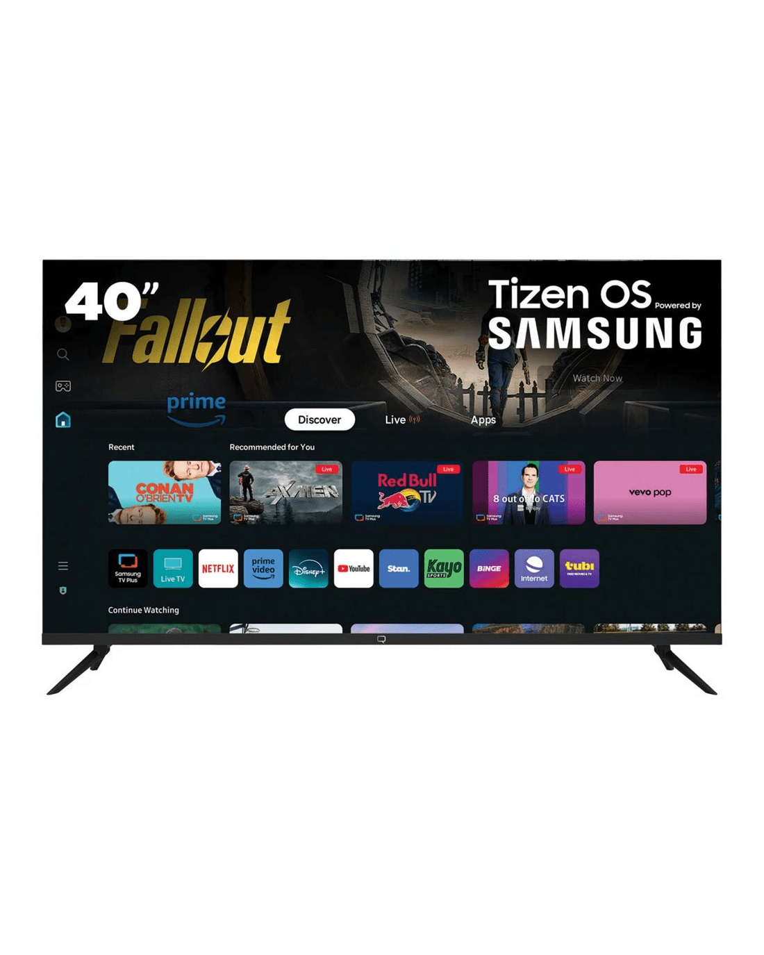 - The TV comes with Tizen - Access a whole new world of entertainment with our new Smart TV powered by Tizen. Have access to hundreds of applications ready to download and install on your Q.Bell Smart TV.