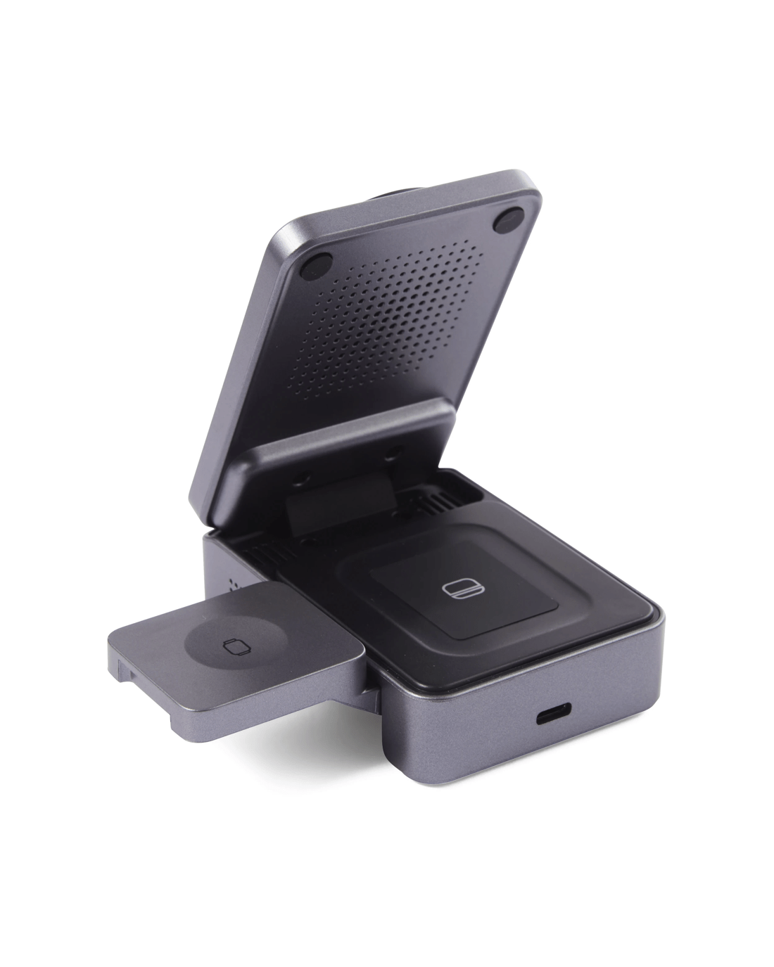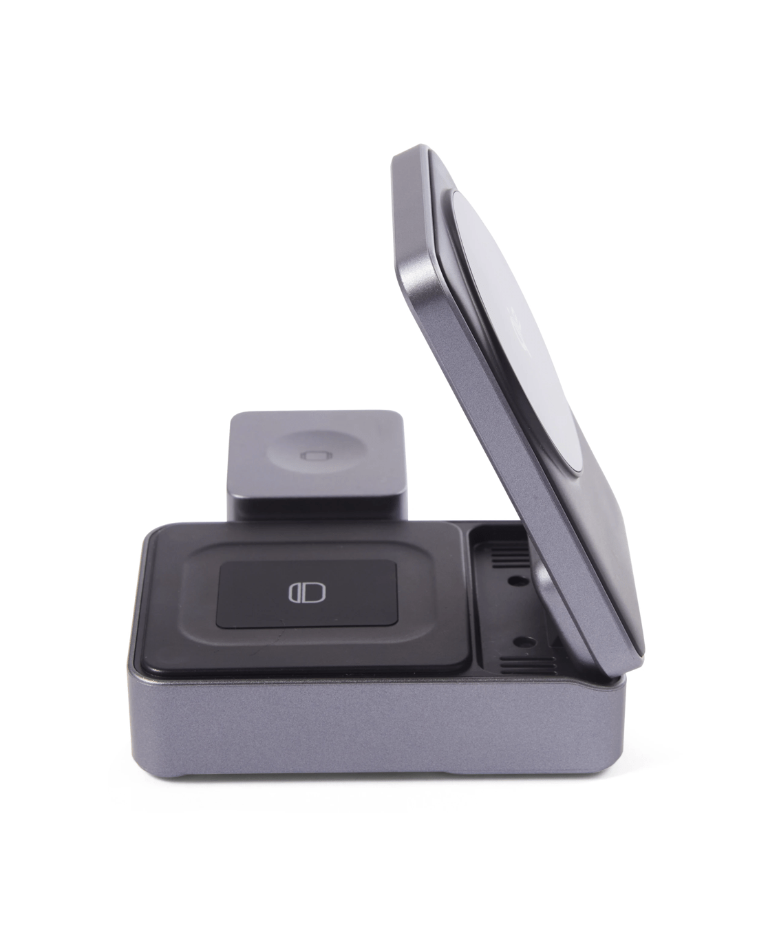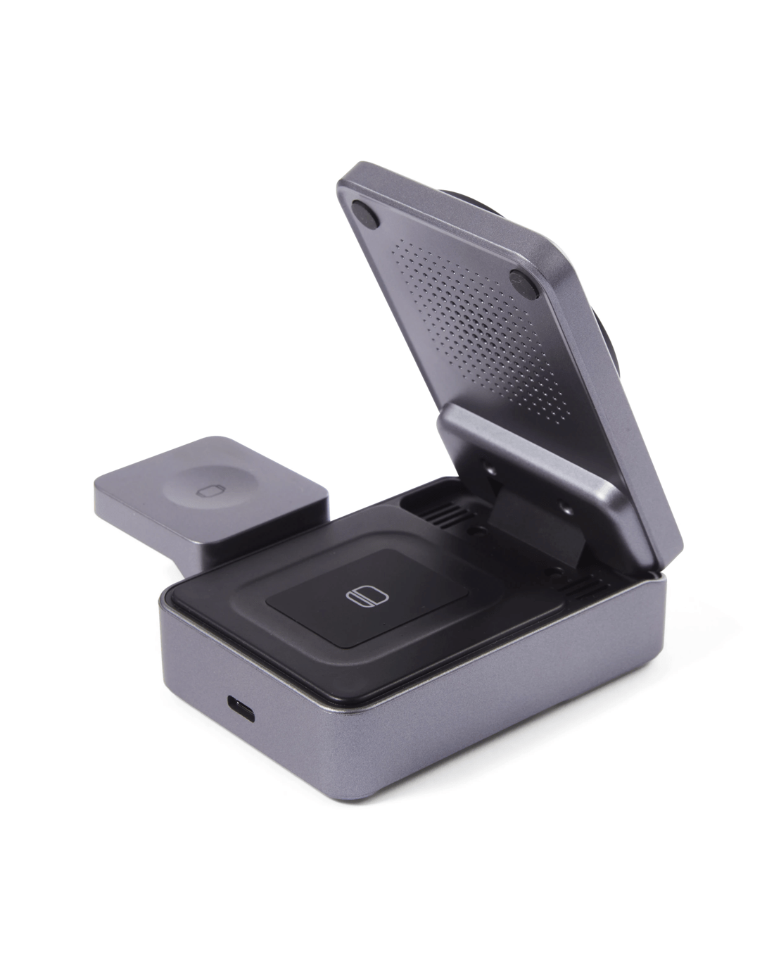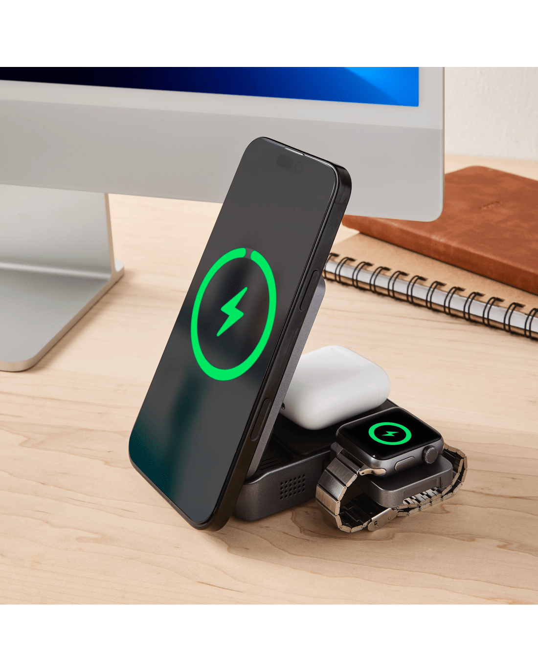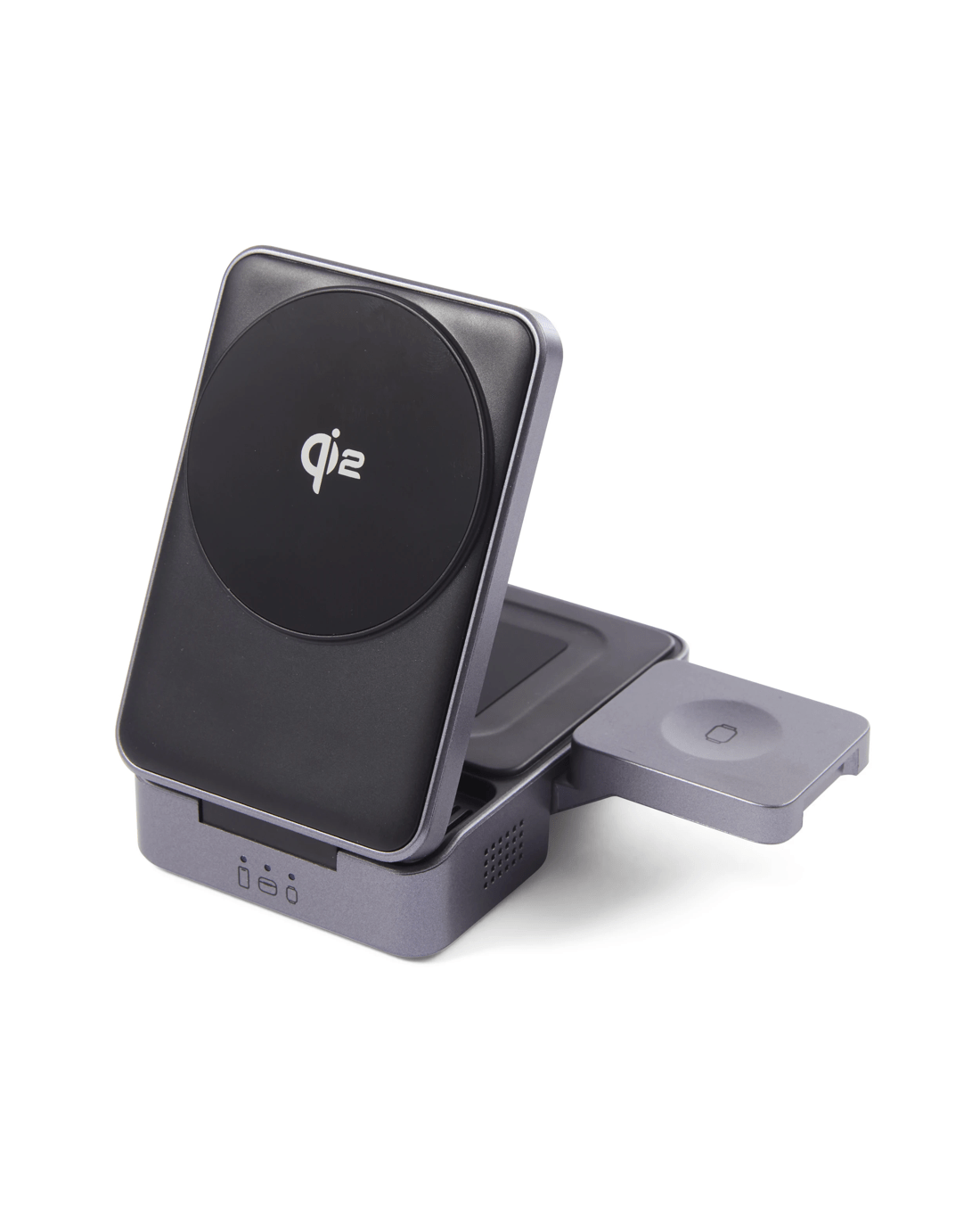 Charge multiple devices with ease using this Qi2 3-in-1 Foldable Wireless Charger - a compact wireless solution designed for phone, earbuds and smartwatch charging in one spot.