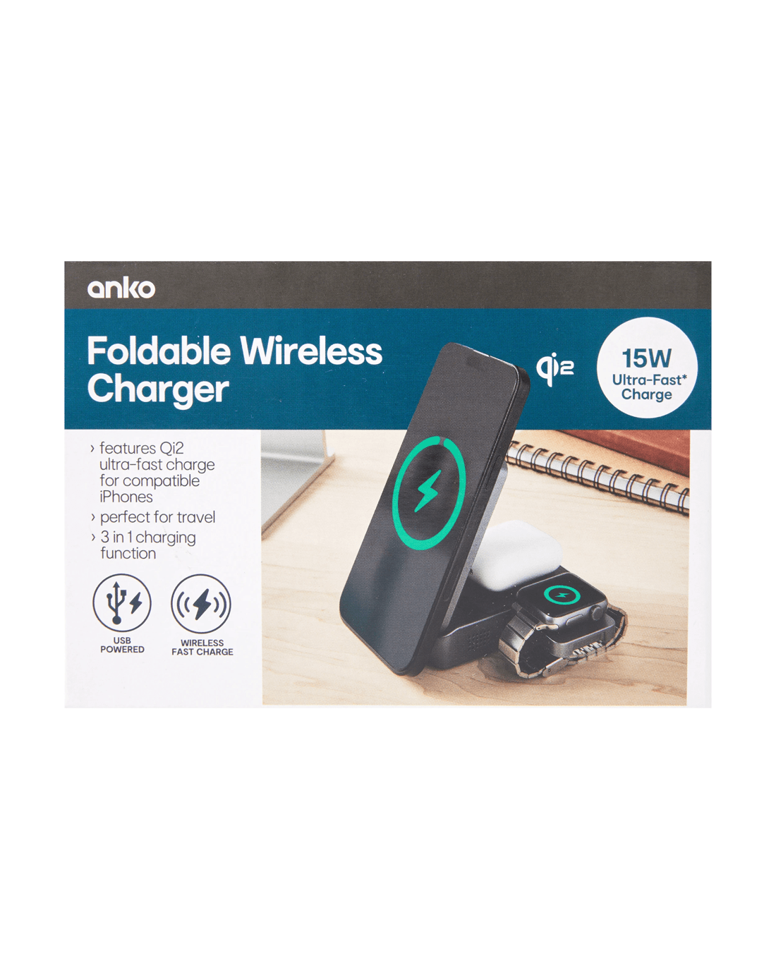 - Includes 3-in-1 foldable wireless charger, 1 x USB-C to USB-C charging cable and user manual