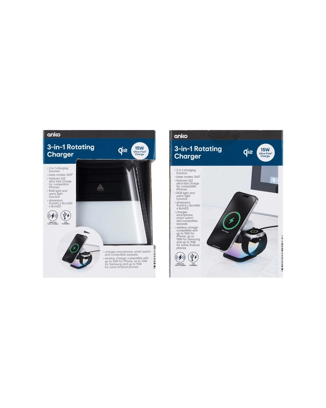 - Includes 3-in-1 rotating charger, USB-C to USB-C charging cable and user manual