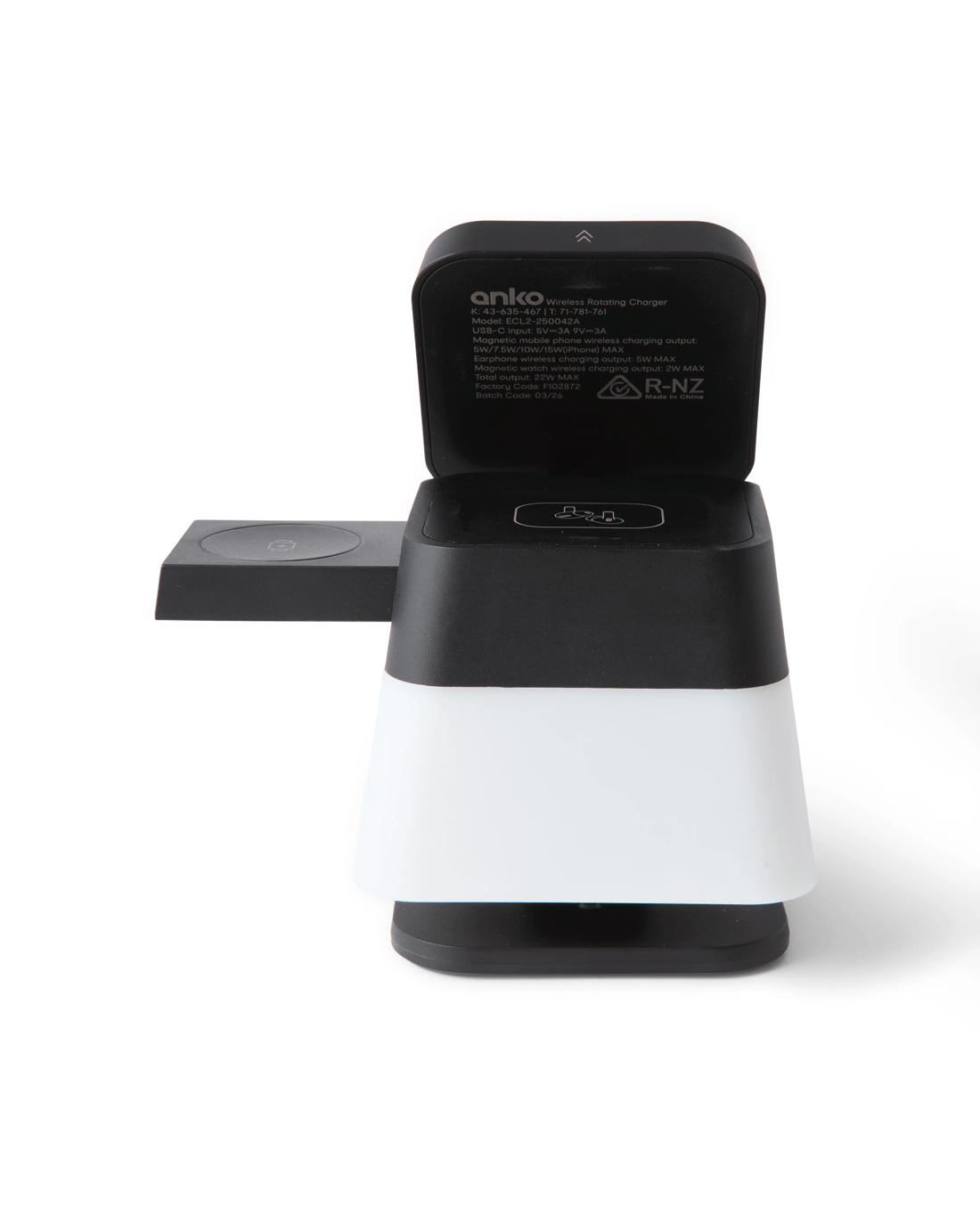 Power up multiple devices at once with Qi2 3-In-1 Wireless Rotating Charger and Light designed for fast, convenient wireless charging. Featuring a rotating stand and built-in light, it's perfect for bedside or desk use day and night.