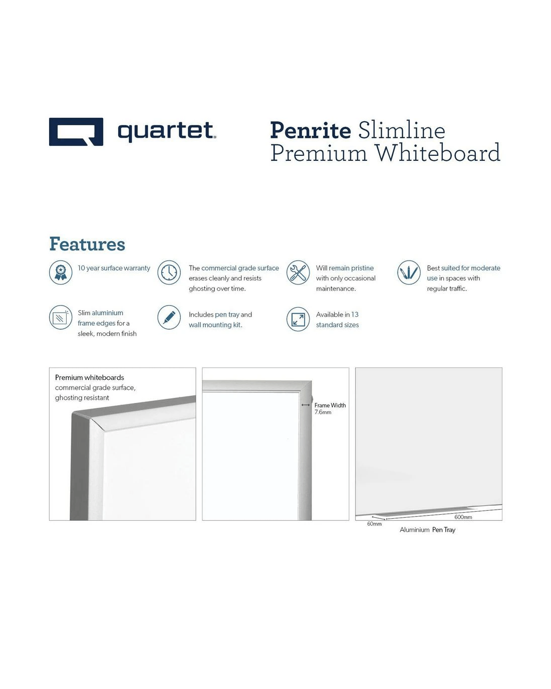 Quartet Penrite Slimline Premium Whiteboard 1800 x 1200mm