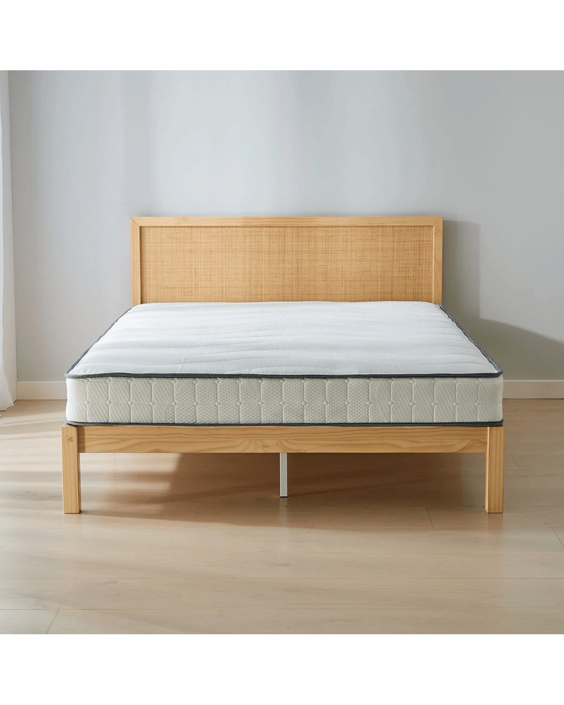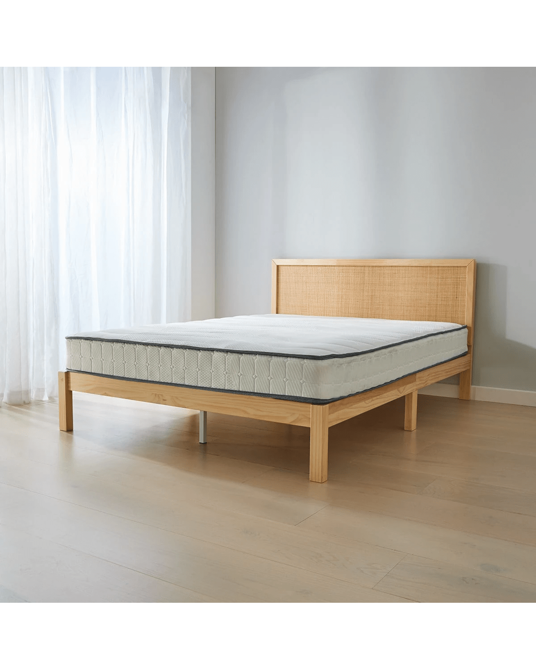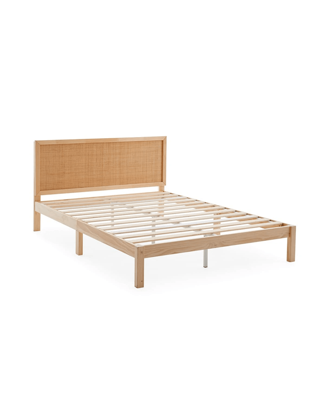 Add style to your bedroom with this on trend Rattan bed! The headboard is finished with natural rattan for a contemporary look that can be paired with most bedsides or bedroom furniture. The base is made from natural pine and has a steel centre rail and support feet for added strength.