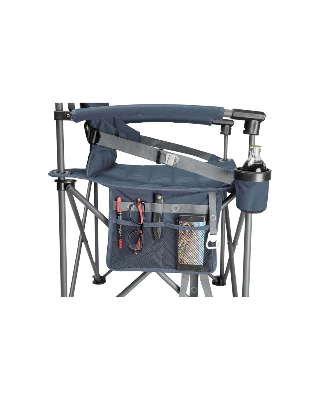 This full-sized chair features padded ergonomic curved hard arms for enhanced comfort and easy access. It includes adjustable lumbar support for personalised comfort and a side organiser pocket for convenient storage of small essentials. Its compact and portable design makes it easy to transport and store, perfect for camping, relaxing around the campfire, or sitting at a camp table.