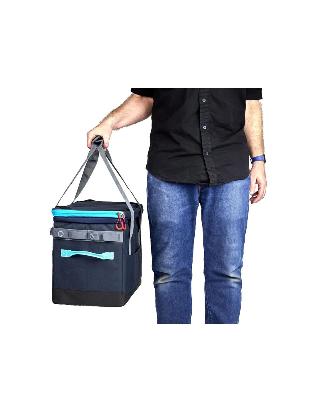 This medium-sized crate provides an initial capacity of 36 litres, which can be expanded to 47 litres with a zippered gusset around the top, allowing for larger items. When not in use, it folds flat to just under 6cm, ensuring easy storage and portability. Reinforced sides help maintain its shape under load, while the solid base and lid provide stability whether carrying camping gear or groceries. Additional features include external stash pockets, a removable organiser under the lid, a comfortable side grip handle, and a padded shoulder strap for versatile carrying options.