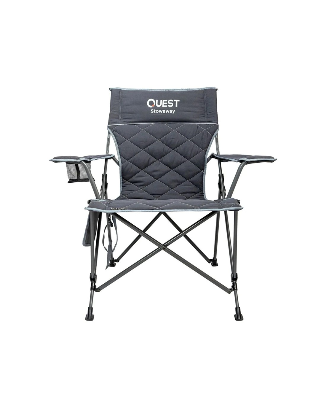Sold by KG SuperStoreQuest Stowaway Camp Chair Steel With Armrests 180kg Capacity Padded - Grey
