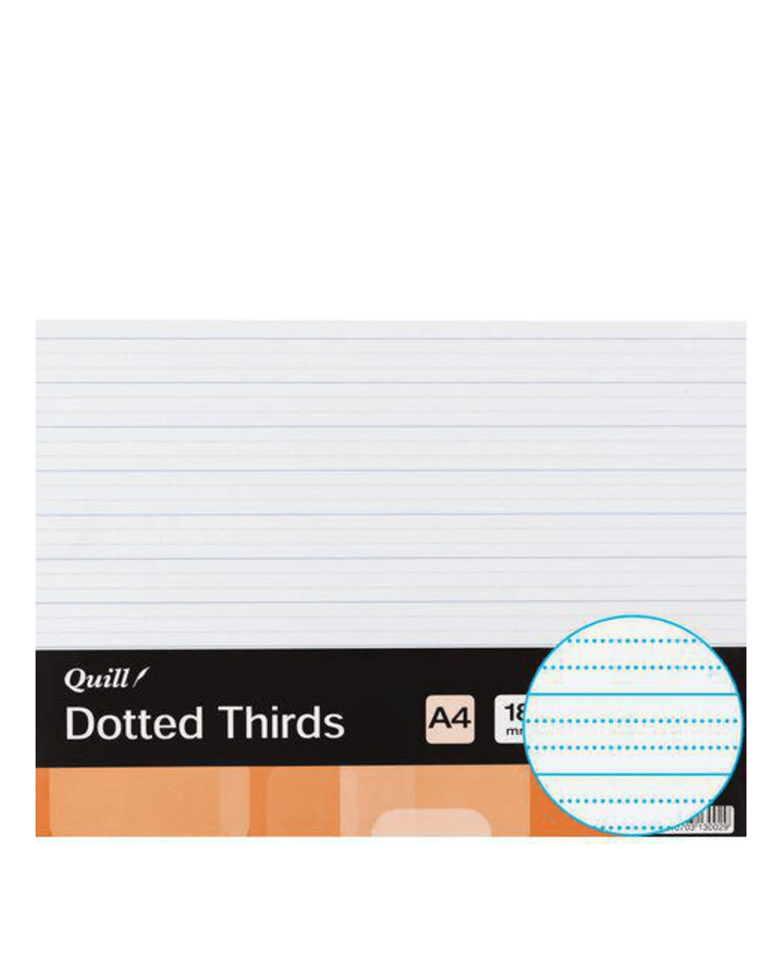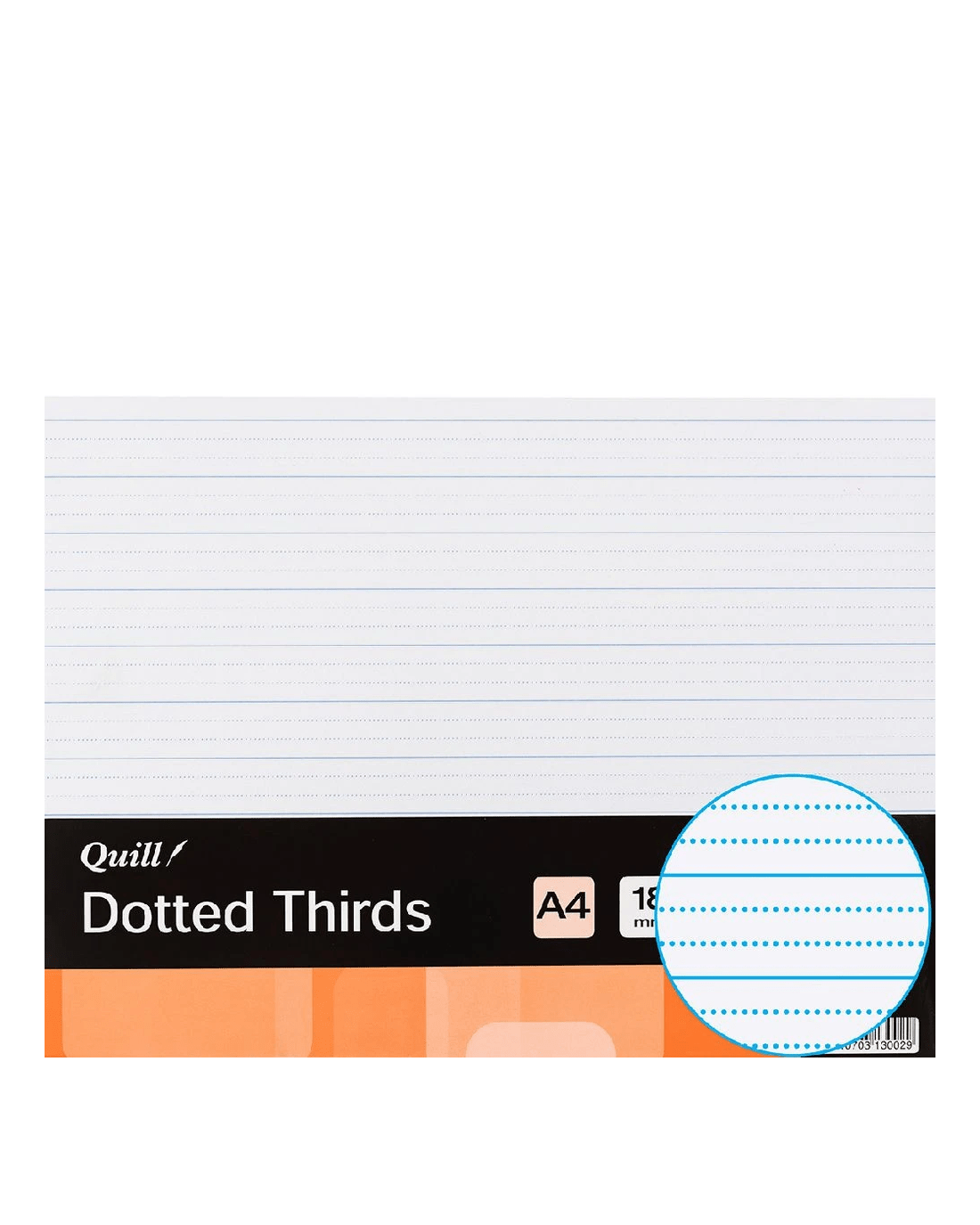 This Quill A4 Paper with 18mm Dotted Thirds will help you learn to understand the shape and size of letters. The paper has clear, faint lines printed on the paper so that you can see where certain letters begin and end.