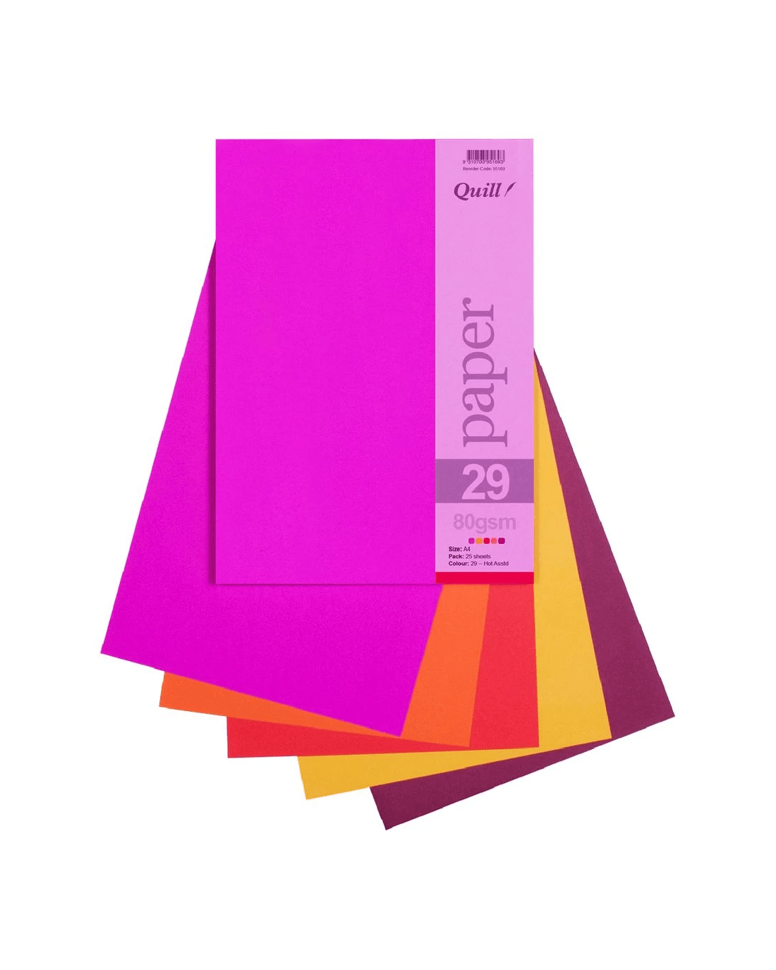 Quill A4 80gsm Paper Hot Assorted 25 Pack