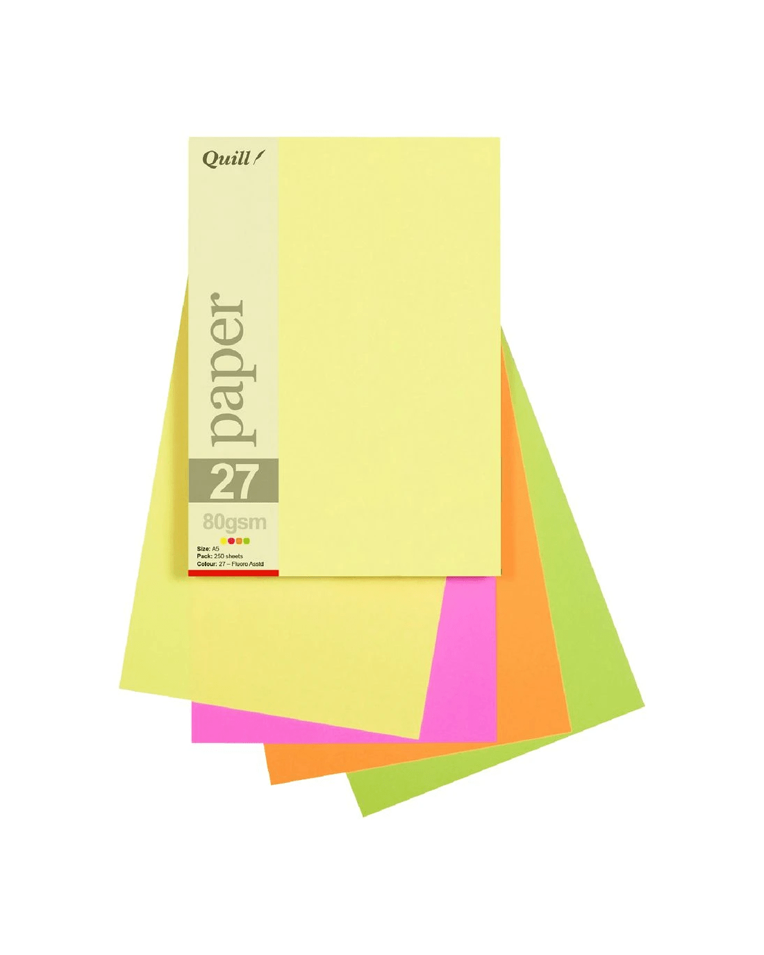 Sold by OfficeworksQuill A5 Paper Fluoro Assorted 250 Pack