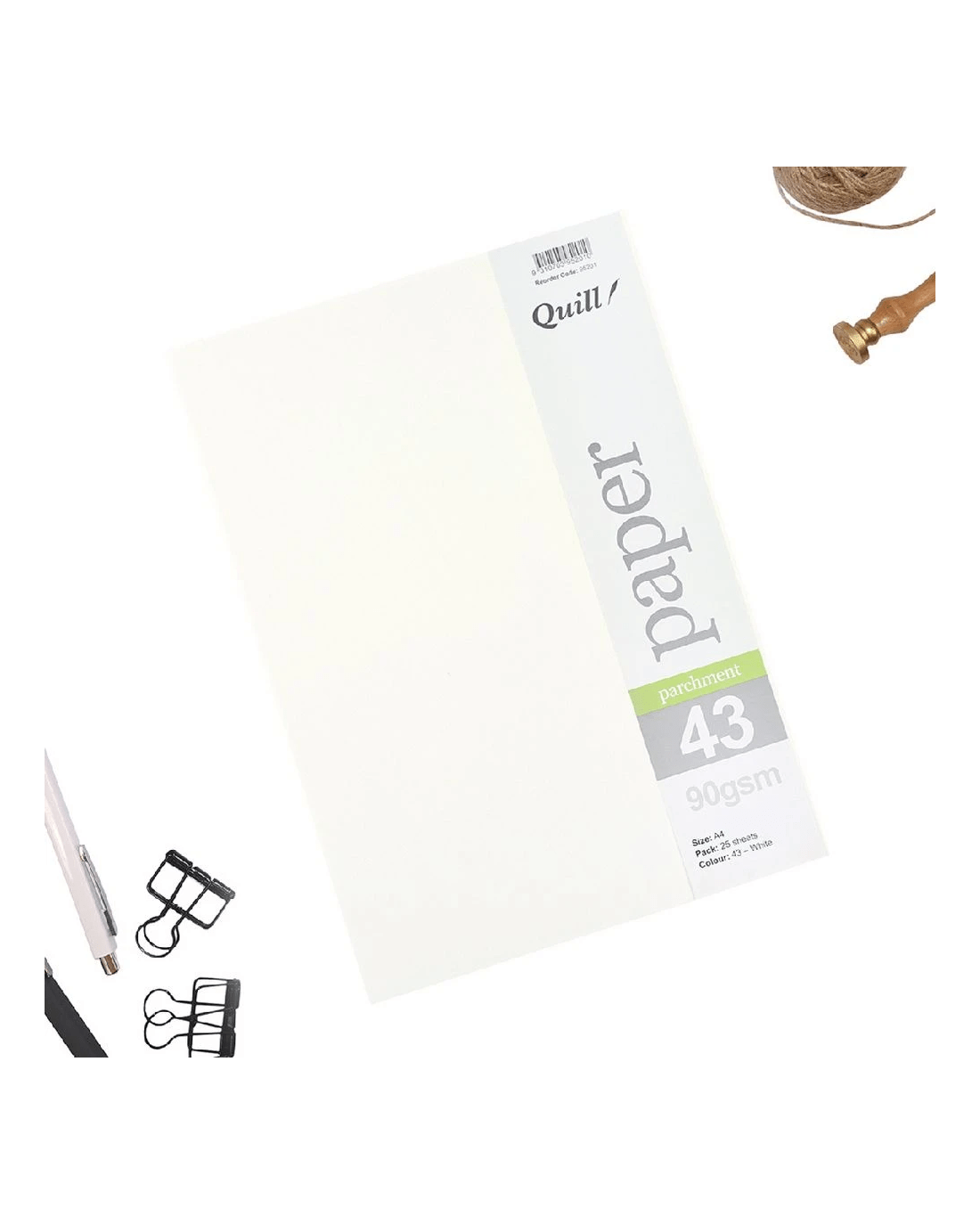 This Quill Parchment Paper is a versatile material for a variety of activities. The 90 gsm paper is a great option for invites and cards, letterheads and certificates or simply on your next craft project.