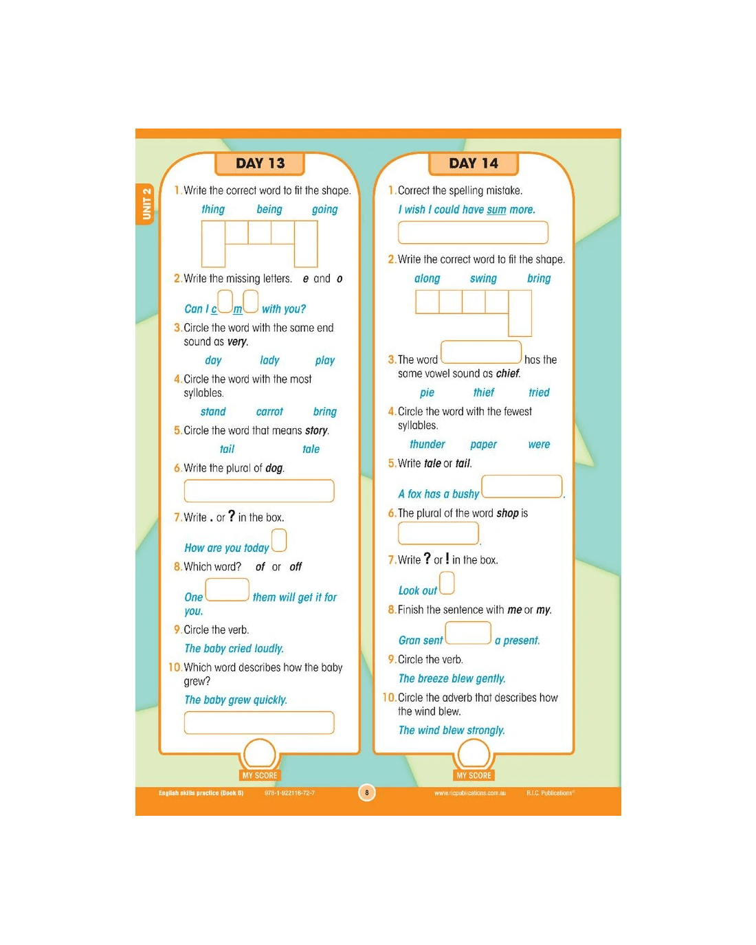 This English Skills Practice Book features fun and colourful daily exercises that will help you to improve literacy skills and widen your vocabulary. Covering areas of the Australian Curriculum, every set of quick but challenging questions is designed to effectively consolidate students’ learning and reinforce concepts taught.