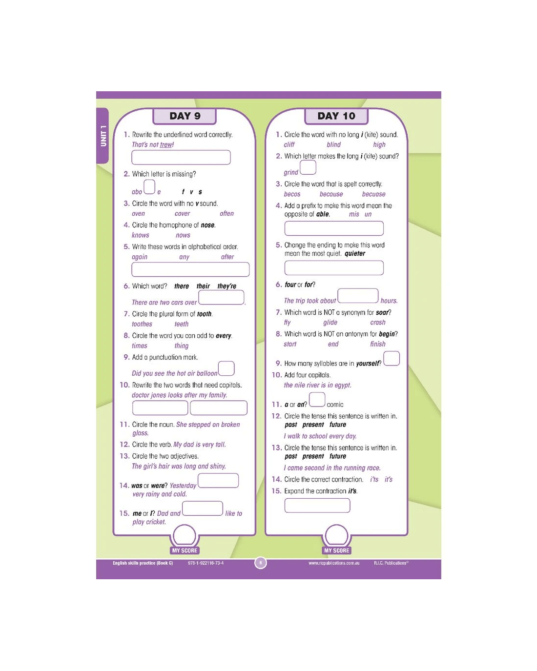 This English Skills Practice Book features fun and colourful daily exercises that will help you to improve literacy skills and widen your vocabulary. Covering areas of the Australian Curriculum, every set of quick but challenging questions is designed to effectively consolidate students’ learning and reinforce concepts taught.