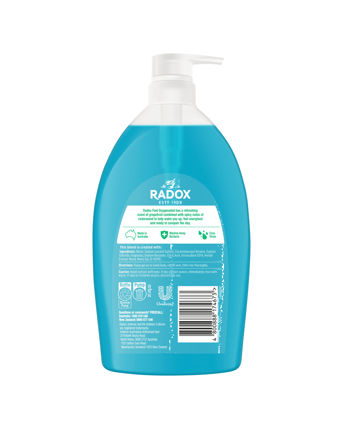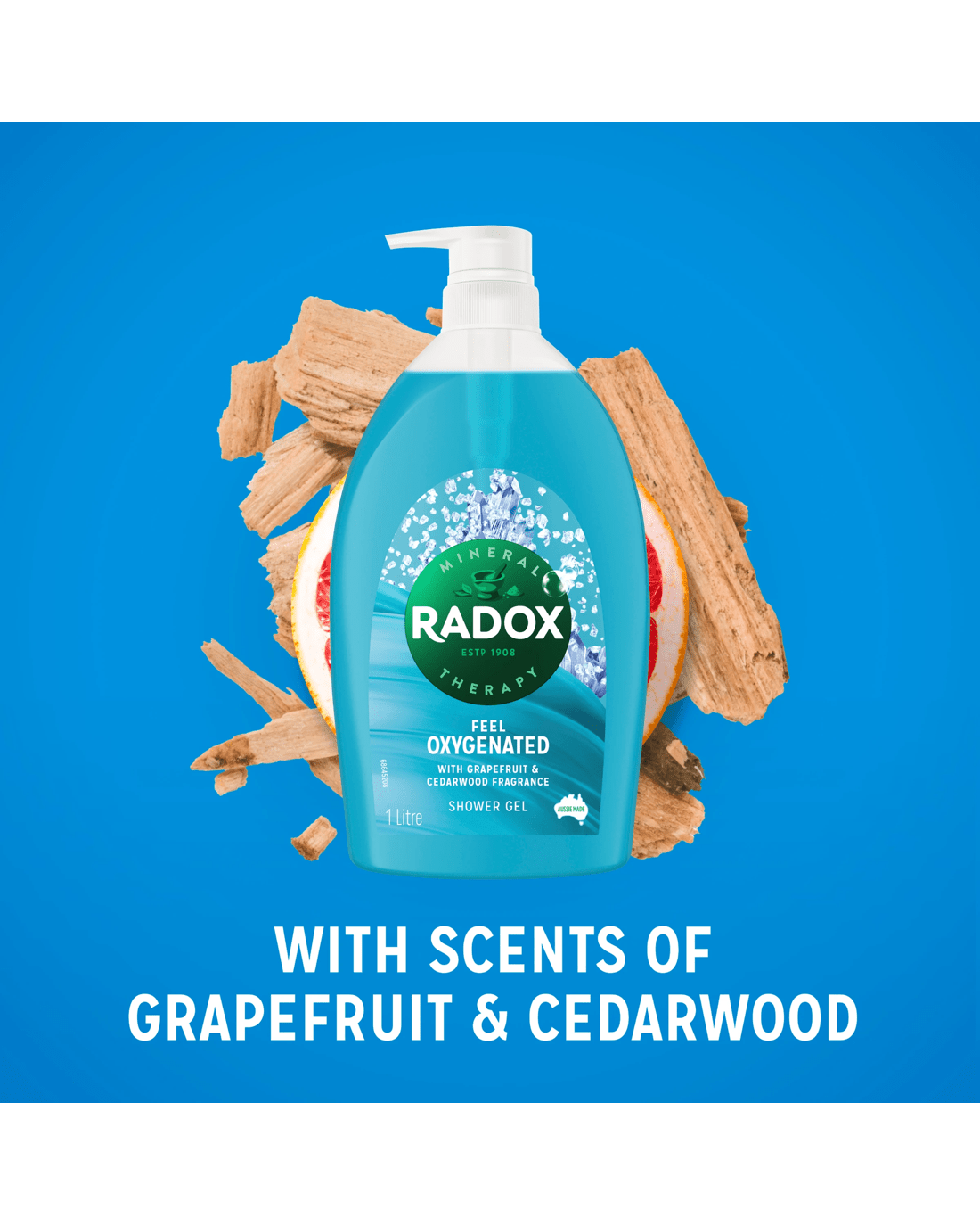 Radox Feel Oxygenated Shower Gel cleanses your skin while recharging your batteries with its mood-boosting fragrance. The refreshing scent of grapefruit combined with spicy notes of cedarwood helps awaken your senses, leaving you feeling energised and ready to conquer the day. This body wash goes beyond cleansing to leave your skin feeling hydrated every time you shower. Suitable for daily use, our shower gel rinses off easily, leaving your skin feeling fresh and clean.