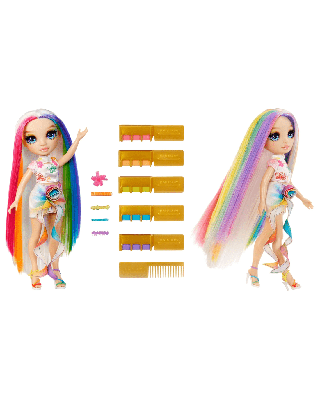 - COLOUR WITH HAIR CHALK. Customise your Rainbow High doll’s hair and your own with 5 washable rainbow hair chalk.