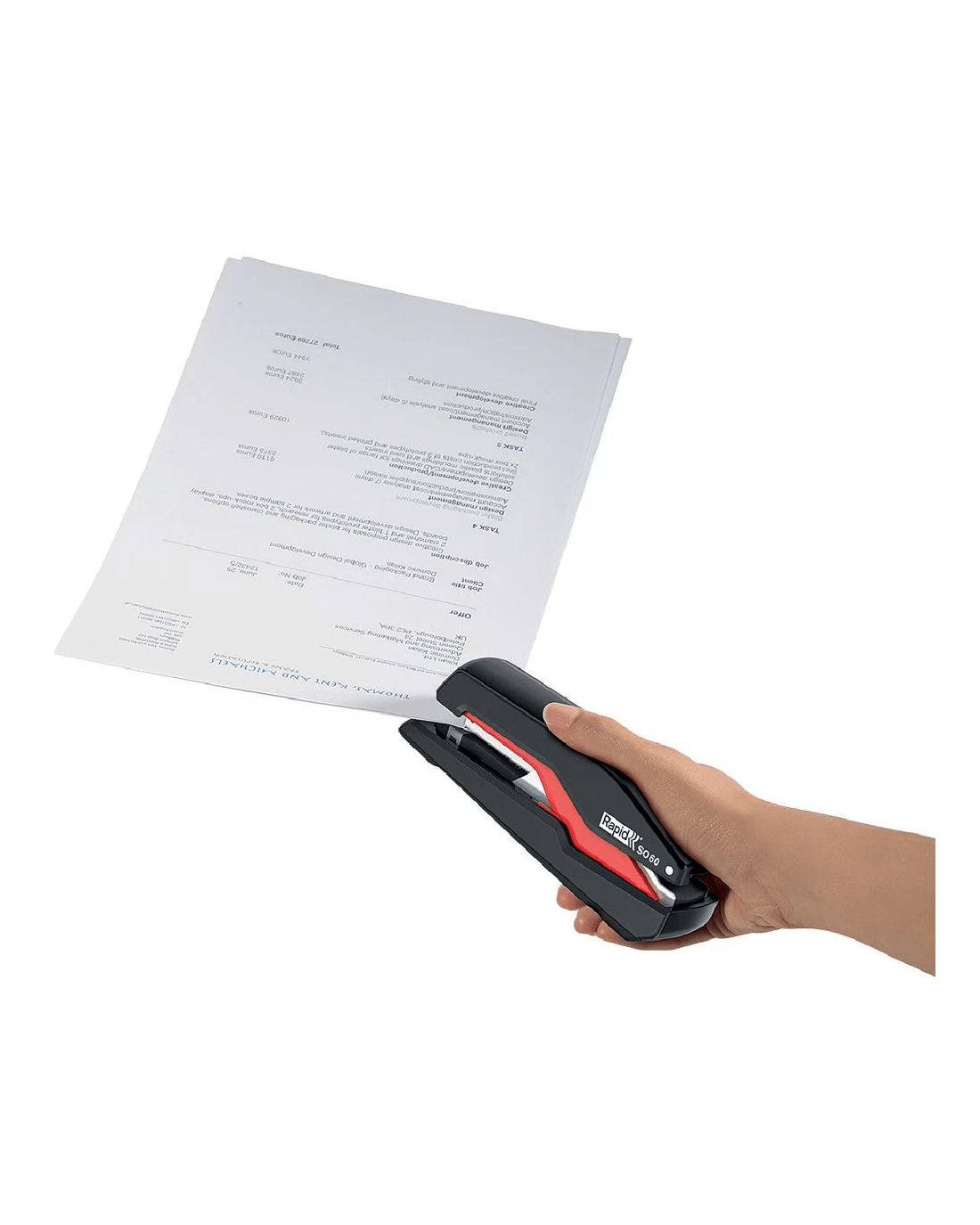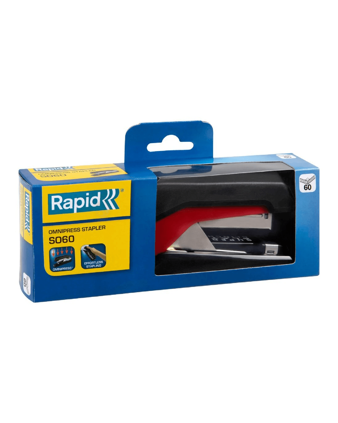 The Rapid SO60 Stapler has a solid steel core and a rubber base for durability. It can staple up to 30 sheets at a time for high precision stapling.