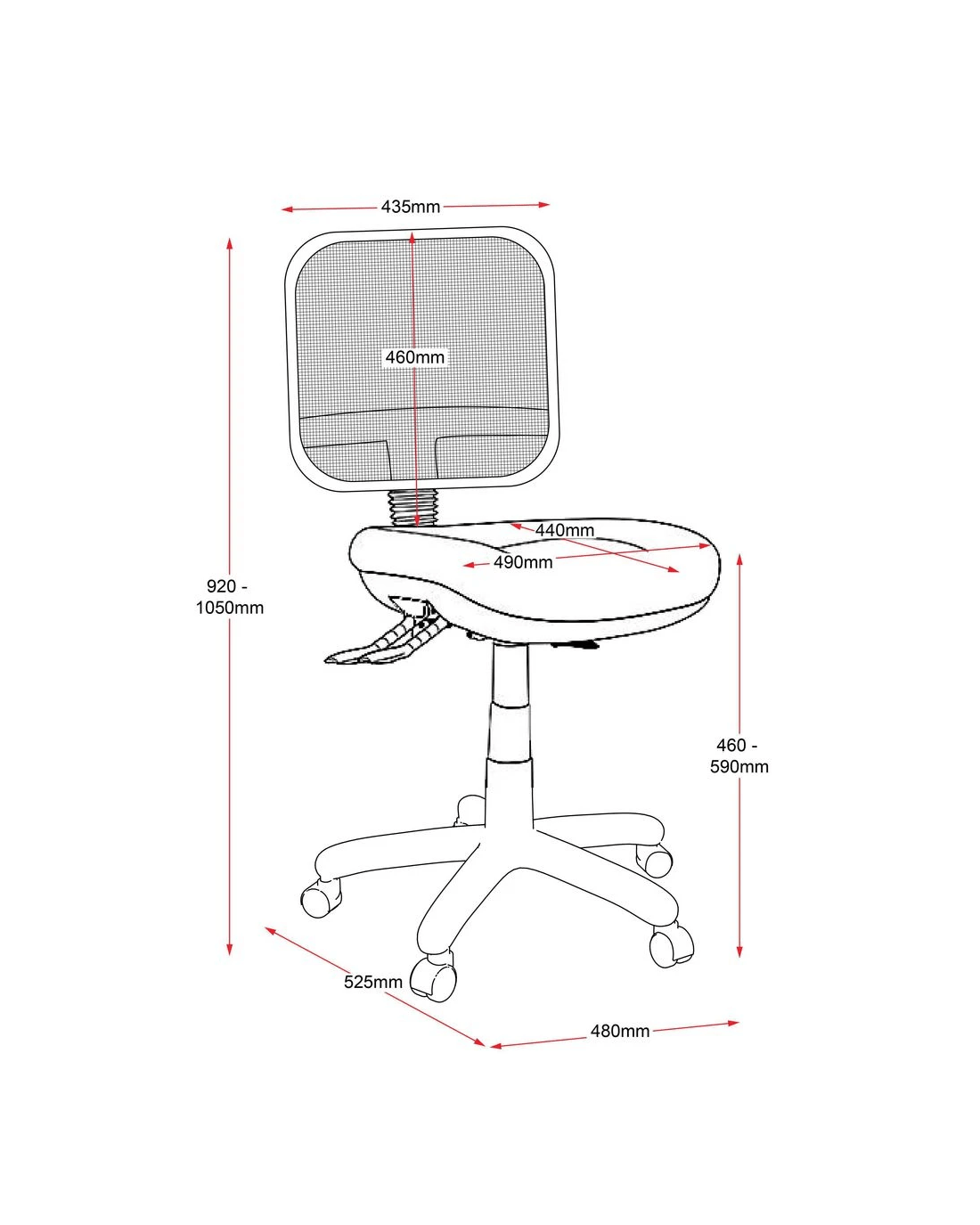 • The seat height range is between 460 - 590 mm.