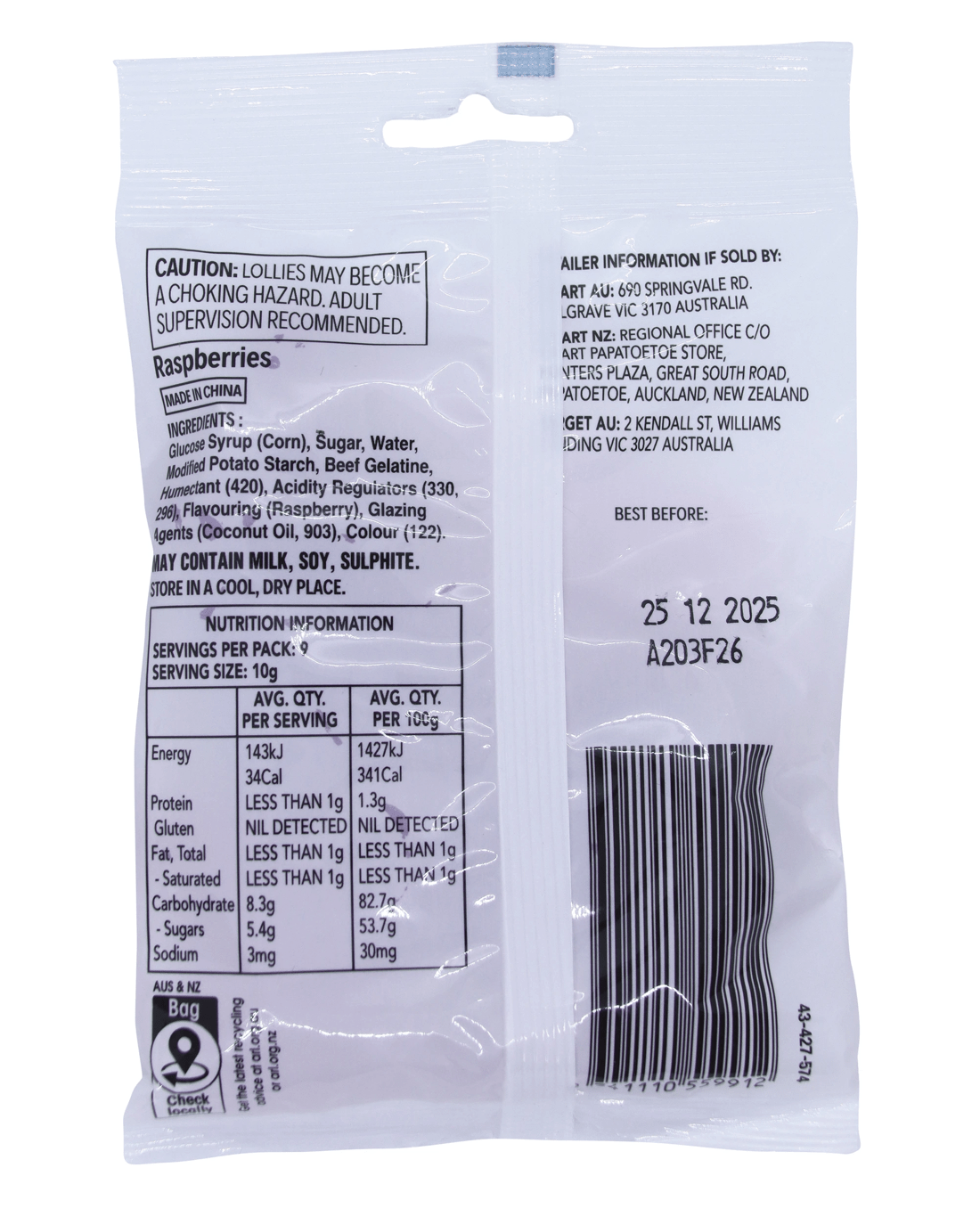 Raspberries Confectionery 90g