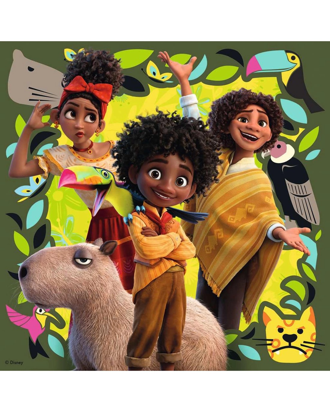 Hola! Treat your favorite young Disney fan to hours of repeat fun with those special Madrigals in our delightful trio of Disney “Encanto” puzzles! Would you like to have super hearing, the ability to shape-shift, or understand animals? Mirabel's cousins Dolores, Camilo and Antonio have those gifts! Her sisters are gifted too; perfect Isabela creates flowers with a wave of her hand, while burly Luisa has incredible strength. But no gift was given to Mirabel, and now she must unravel the prophecy her Uncle Bruno saw, even when no one will talk about him. Will the prophecy about Mirabel mean the end of the Madrigal family, or a new beginning? Puzzles develop hand-eye coordination, fine motor skills and problem-solving! Our set of three 49-piece puzzles have handy, full-size picture guides and large, durable pieces little hands can easily hold for lots of repeat fun. Clean-cut pieces and Ravensburger's tight interlocking fit provide a pleasurable puzzling experience for children and their adult helpers alike. Our Perfect Age Fit criteria ensures this puzzle is fun and educational for ages 5 and up! Ages: 5+