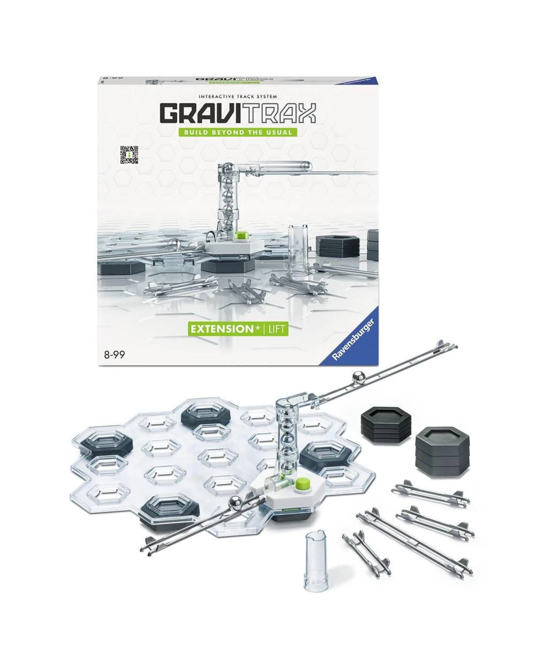 The Extension Lift flexibly lifts the balls to new heights on the GraviTrax track. Experience the power of gravity! GraviTrax is the all Construction toy STEM track system from Ravensburger! Use your imagination to build superb tracks and set the gravity spheres rolling! Raise your track to new heights! Press the lever as a marble enters the Lifter at the bottom to release the marble at the top. Combine the Lifter with your GraviTrax Starter-Set for an elevated experience! How many marbles can you raise to the top? This STEM system [Science, Technology, Engineering and Maths] is an ideal one to teach kids about gravity, magnetism, kinetic energy and fun. Hit a snag? Freestyle with your own track design or use the tasks and blueprints included to help you to get started in the world of GraviTrax! Are the gravity spheres stopping or flying off before reaching the end target? Time for some problem solving. Rebuild and try something different! The GraviTrax track system can be extended indefinitely with extra track packs and add-on's - each sold separately. Ages 8 +