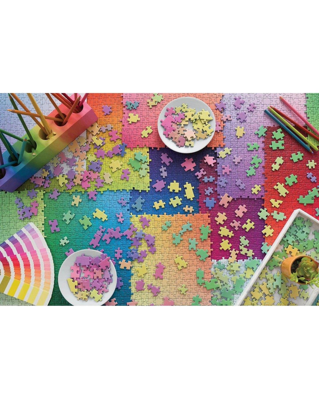 YouTube host Karen Puzzles (aka Karen Kavett) has been doing jigsaw puzzles for as long as she can remember. Since starting her channel in 2018, she has posted over one hundred fun videos about the most interesting puzzles she can find. A self-proclaimed nerd, Karen is happy to share her favourite hobby with puzzlers all over the world, saying, “After doing puzzles my entire life, I'm so happy to have the opportunity to create my own ultimate dream puzzle.” Ravensburger is thrilled to bring you her very own puzzle design to enjoy! Part of our Karen Puzzles Collection series, this image uses photographed gradient puzzle pieces from The Play Group's 5000-piece gradient puzzle, designed by acclaimed artist Clemens Habicht, with each piece subtly different from the next. Karen also combined Ravensburger's Krypt gradient puzzle pieces with other playful elements in this engaging composition. She says, “I love puzzles that are colourful, because I always say that if I'm going to be staring at something for hours on end, I want it to be colours that make me happy!” This 3,000-piece jigsaw puzzle features clean-cut pieces and our perfect interlocking fit for a most pleasurable puzzling experience. Embark on a one-of-a-kind puzzle adventure with Ravensburger Puzzles on Puzzles 3000 Piece Puzzles. Piece by piece, you'll unravel the hidden layers and interconnected designs, challenging your mind and captivating your imagination.