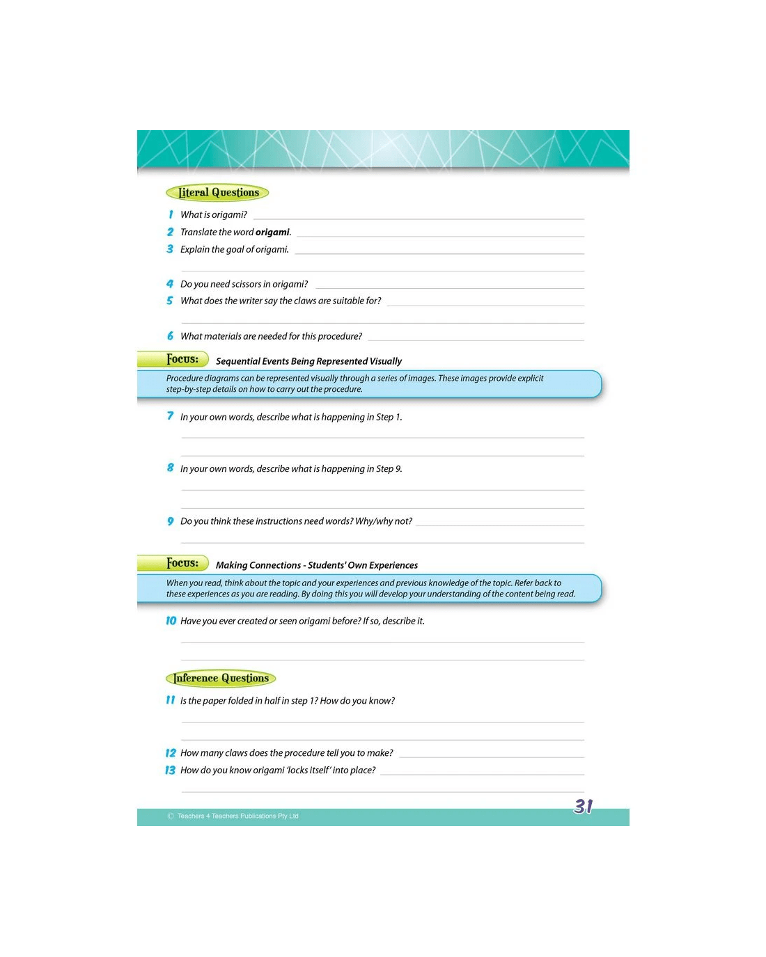 - This activity book aims to improve the reading comprehension and teach school-aged children about writing techniques as well as writer intent.