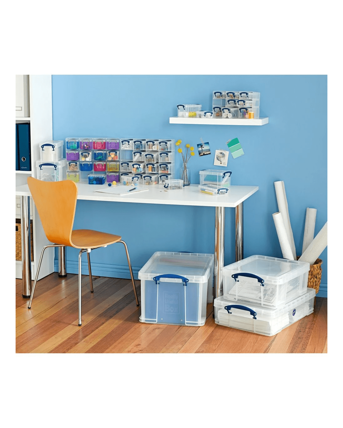 These Really Useful Boxes stack easily with or without lids, creating a space-saving storage solution. The lid features a secure locking mechanism to keep contents safe, while the flat, reinforced base ensures strength and durability. They're perfect for storing stationery, office supplies and much more.