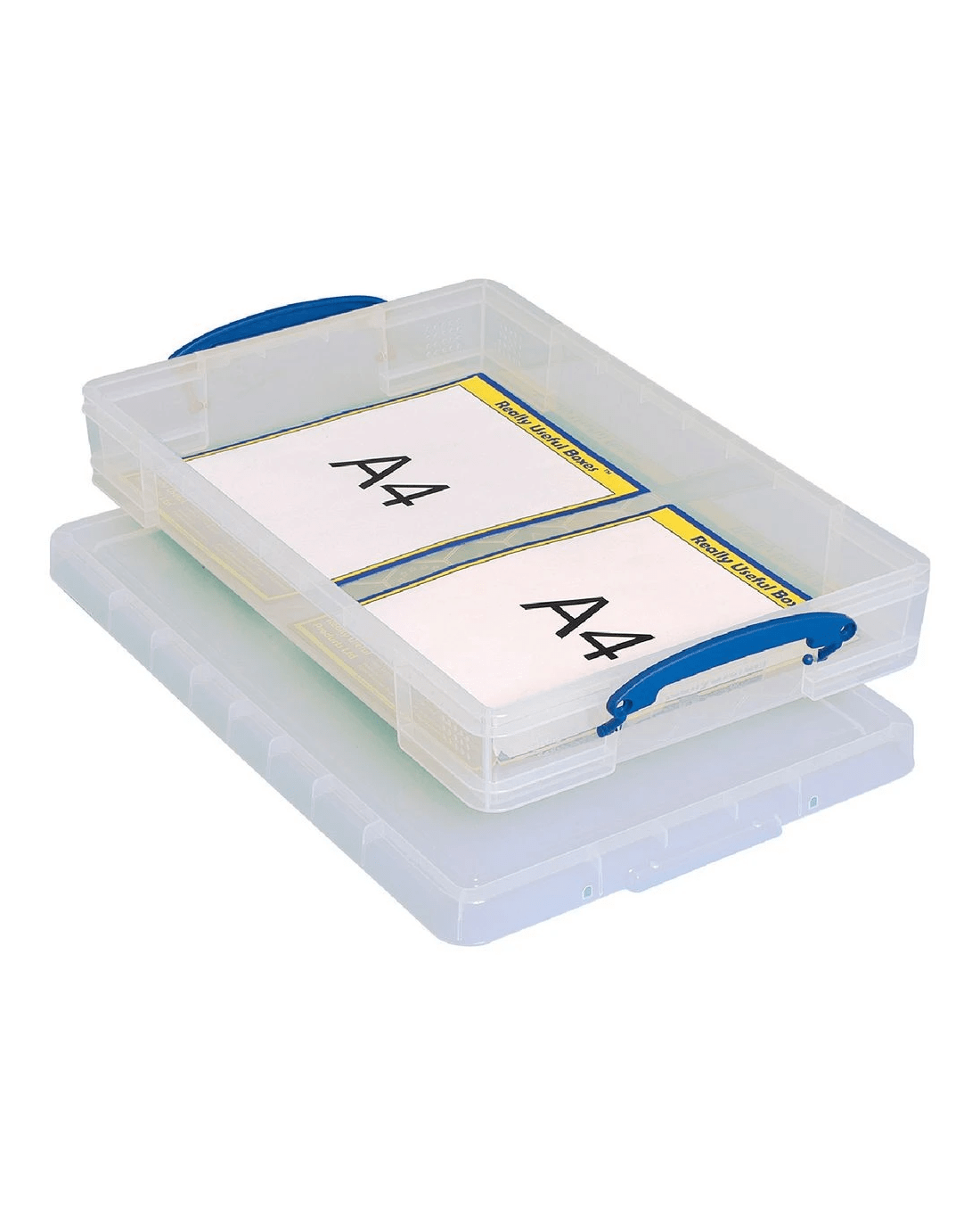 These Really Useful Boxes stack easily with or without lids, creating a space-saving storage solution. The lid features a secure locking mechanism to keep contents safe, while the flat, reinforced base ensures strength and durability. They're perfect for storing A3 paper and as a way to store or transport household items.