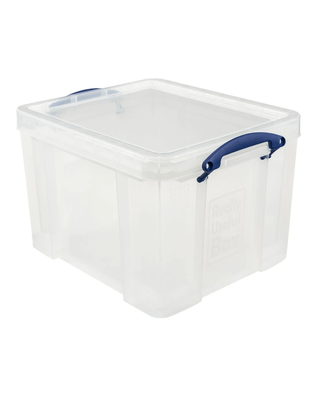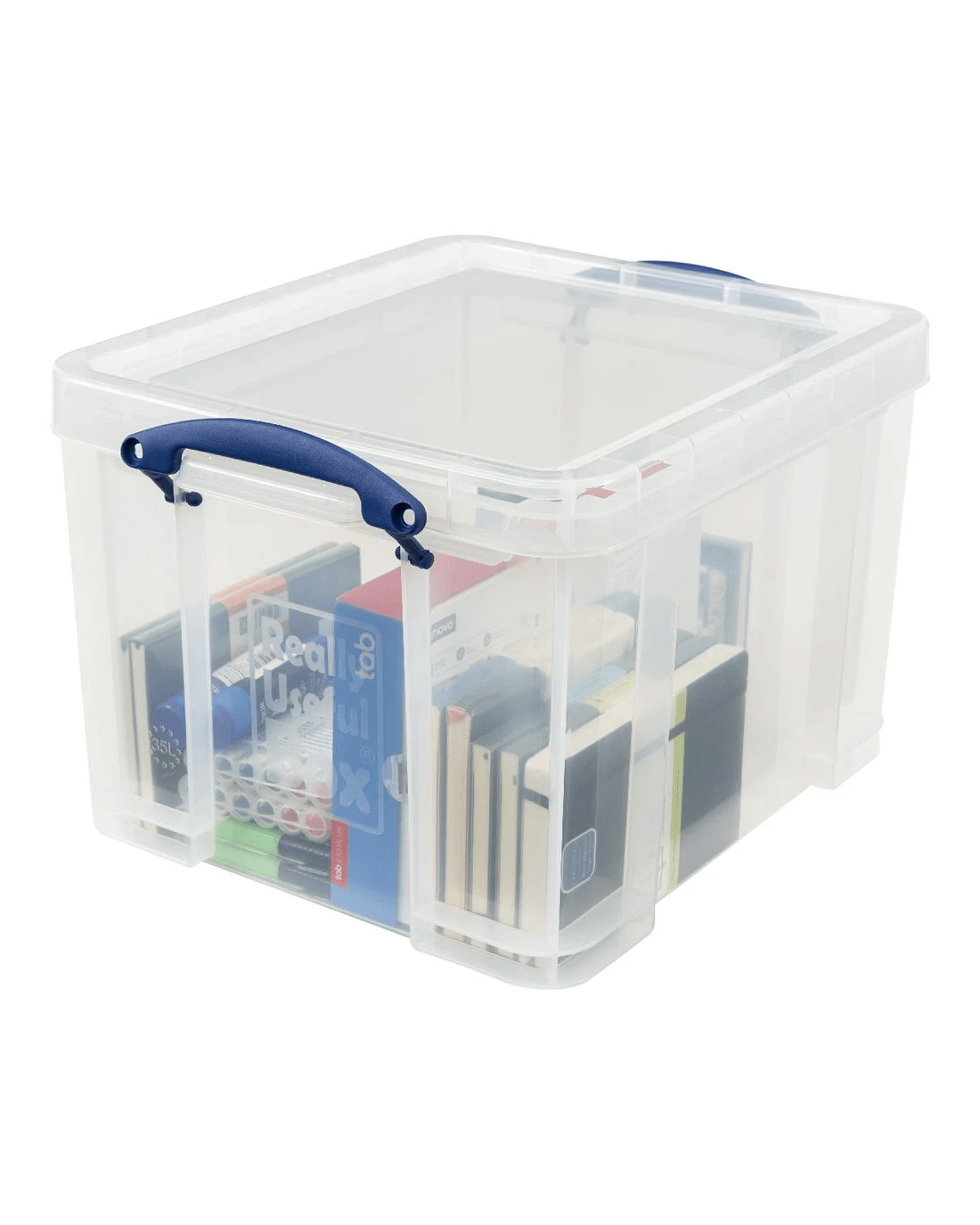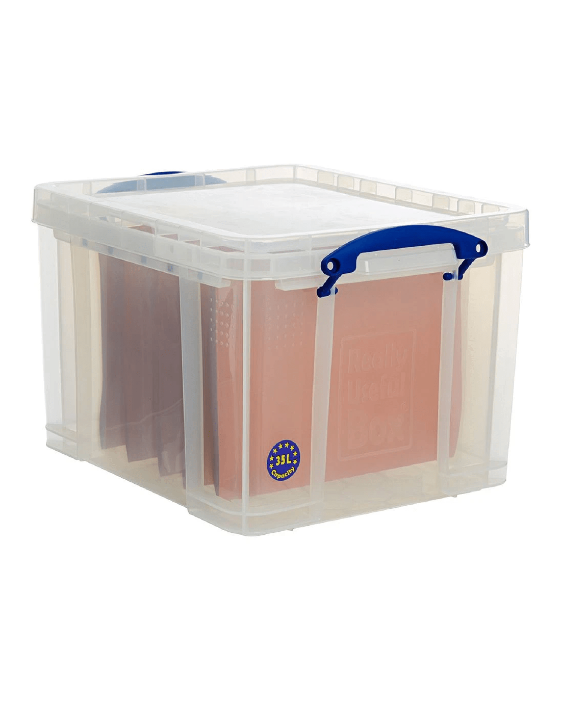 These Really Useful Boxes stack easily with or without lids, creating a space-saving storage solution. The lid features a secure locking mechanism to keep contents safe, while the flat, reinforced base ensures strength and durability. They're perfect for office storage including suspension files and lever arch files.