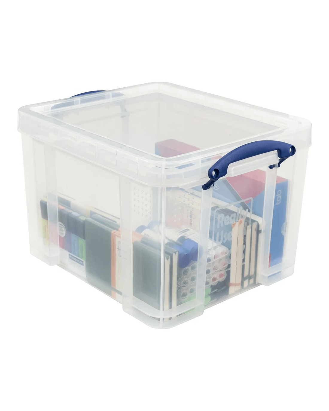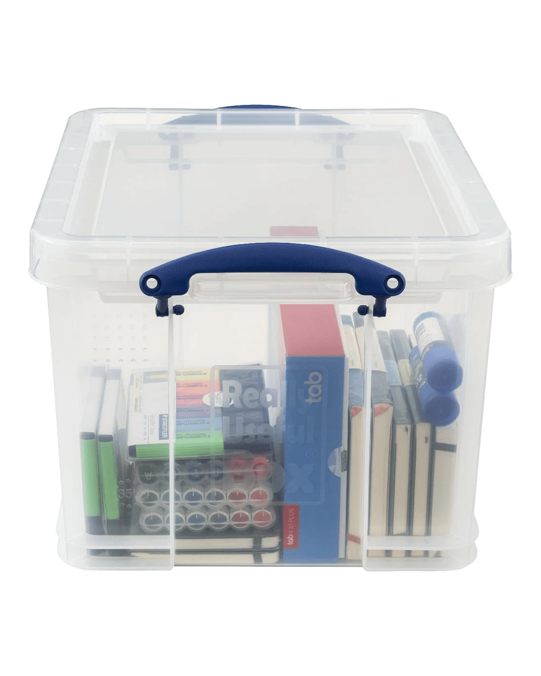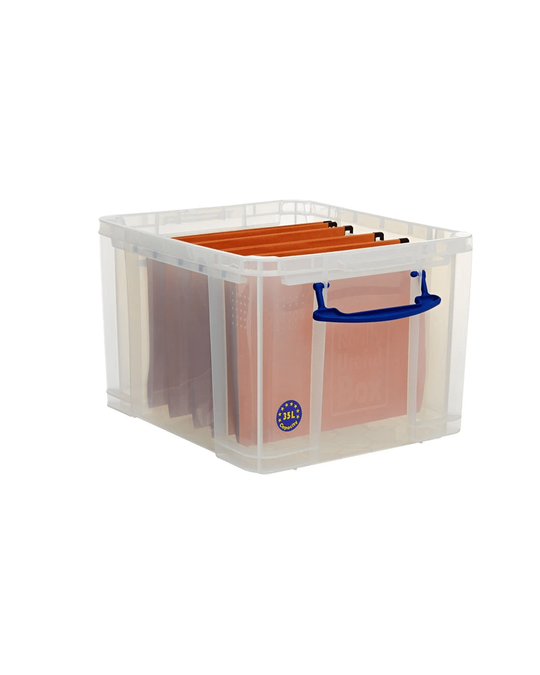 These Really Useful Boxes stack easily with or without lids, creating a space-saving storage solution. The lid features a secure locking mechanism to keep contents safe, while the flat, reinforced base ensures strength and durability. They're perfect for office storage including suspension files and lever arch files.