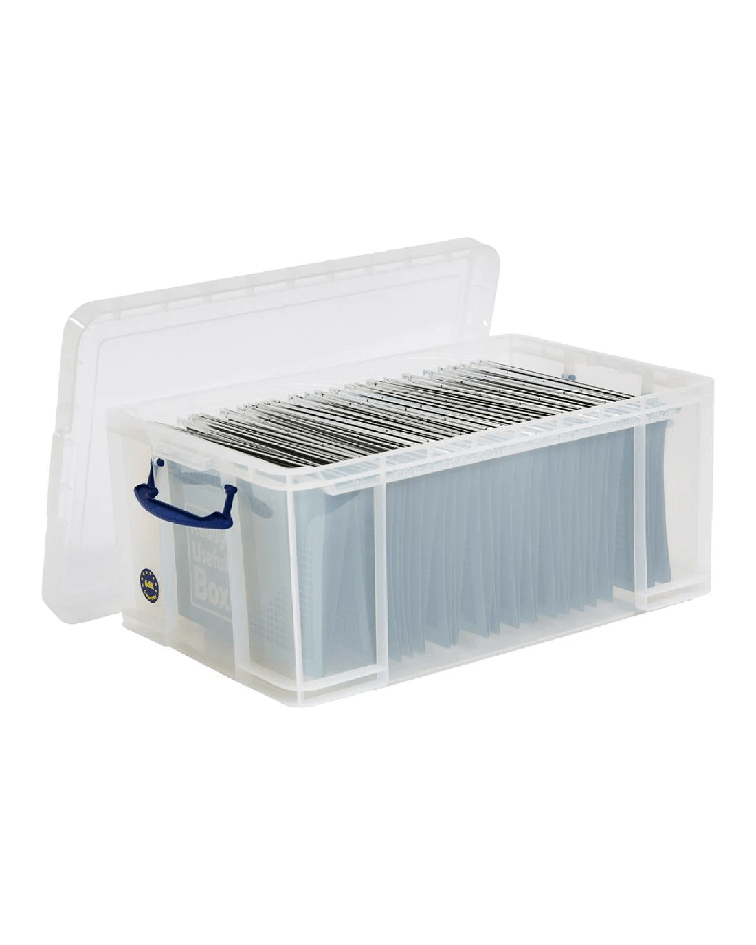 These Really Useful Boxes stack easily with or without lids, creating a space-saving storage solution. The lid features a secure locking mechanism to keep contents safe, while the flat, reinforced base ensures strength and durability. They're perfect for office storage including suspension files and lever arch files.
