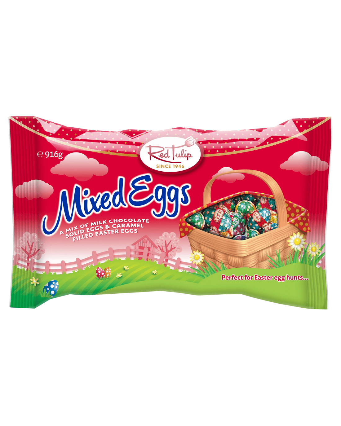 - Includes 916g Red Tulip Easter eggs milk chocolate solid easter eggs