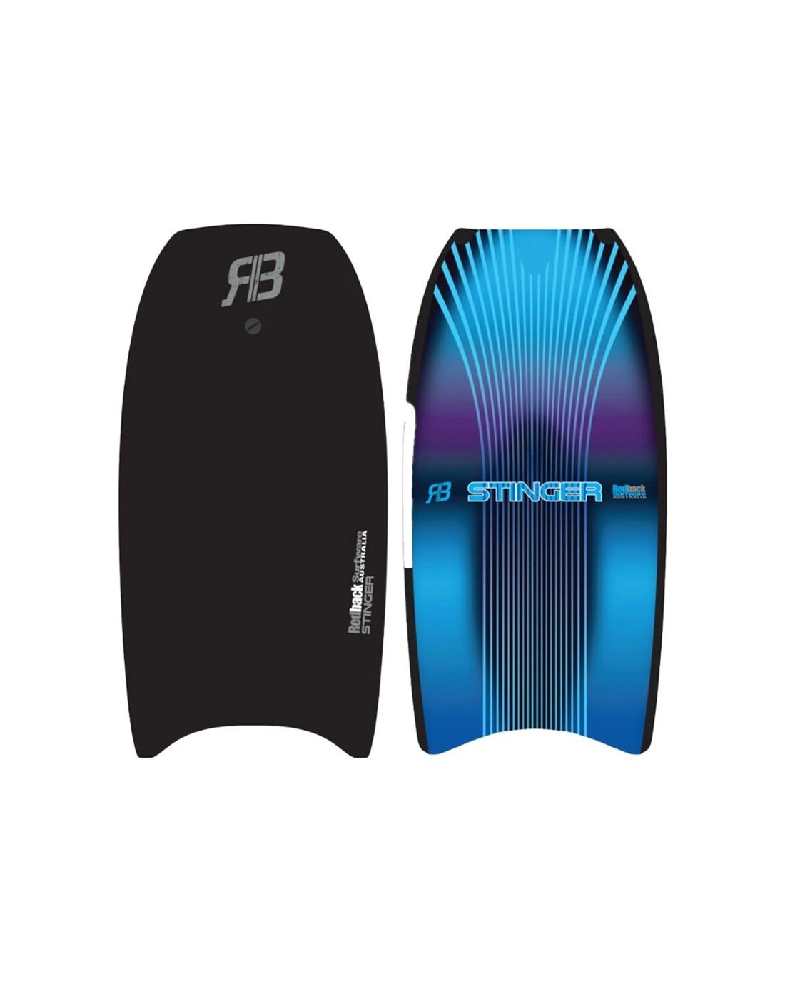 Redback Stinger 360 Degrees Surf Bodyboard/Boogie Board 42-inch Black Experience the pinnacle of bodyboarding performance with the Redback Stinger 360 42 Black. Designed with cutting-edge technology, this high-performance bodyboard offers exceptional speed, control, and durability for enthusiasts of all levels. Constructed with a recompressed EPS core and reinforced with a massive 200 tonne compression, it ensures excellent buoyancy, rigidity, and long-lasting strength. The smooth deck and crescent tail contribute to a comfortable ride, while twin channels and a single concave boost speed and maintain superior grip on the wave. Moulded thumb and hand grips on top and bottom provide precise handling, making every wave easier to catch and ride effectively. Key Features: Advanced Technology: World's most technologically advanced bodyboard with exclusive patents for enhanced speed and durability. Wave Control and Speed: Twin channels and a single concave create lift and direct water flow for superior grip and increased speed. Precise Handling: Moulded thumb and hand grips for more control during rides. Design for Comfort: Crescent tail and smooth deck ensure a comfortable and stable riding experience. Durable Construction: Made from 200 tonne compression material for enhanced strength and longevity. Specifications: Brand: Redback Product Type: Water sports equipment Model: Stinger 360 Design Features: Crescent tail, twin channels, single concave Included: Free wrist leash and plug Includes: 1 x Bodyboard