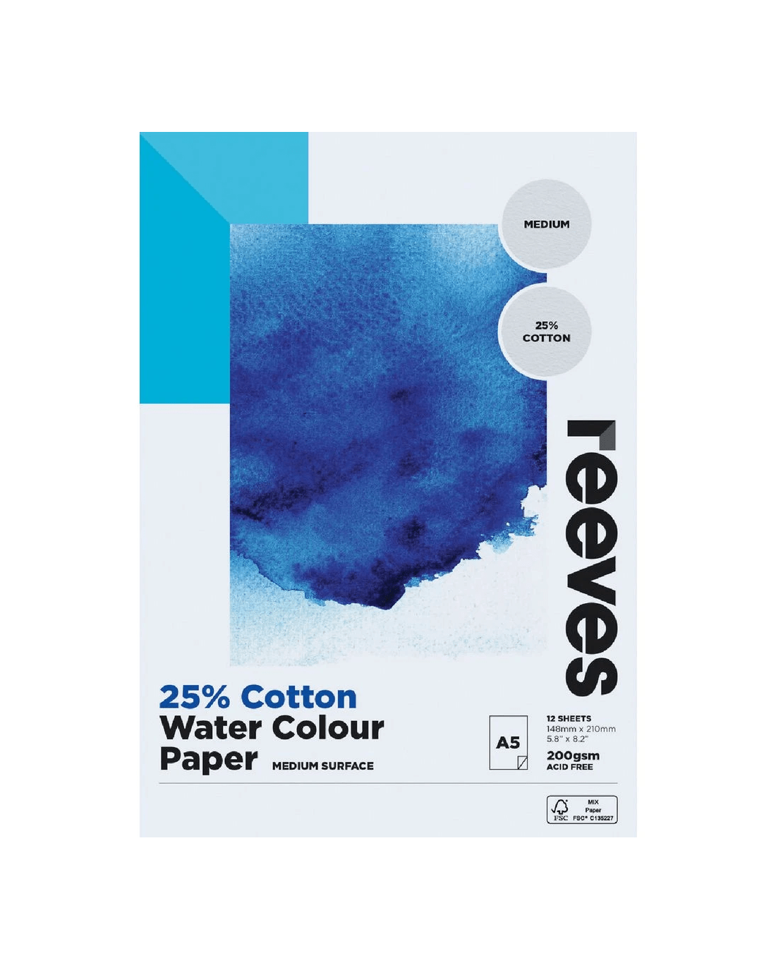 Sold by OfficeworksReeves 25% Cotton Watercolour Pad 200gsm 12 Sheets A5