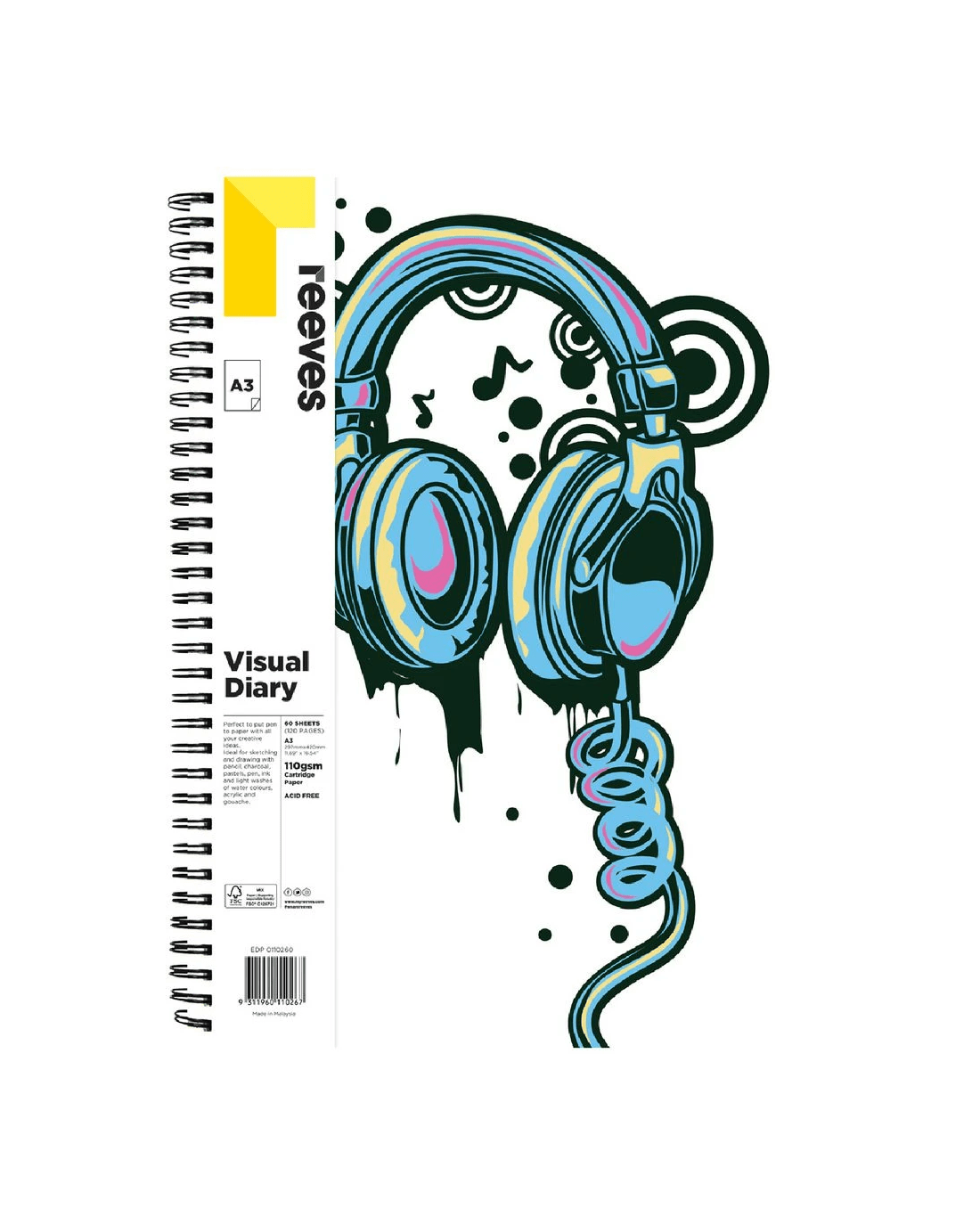 Sold by OfficeworksReeves A3 Visual Art Diary 110gsm 60 Sheets Headphones