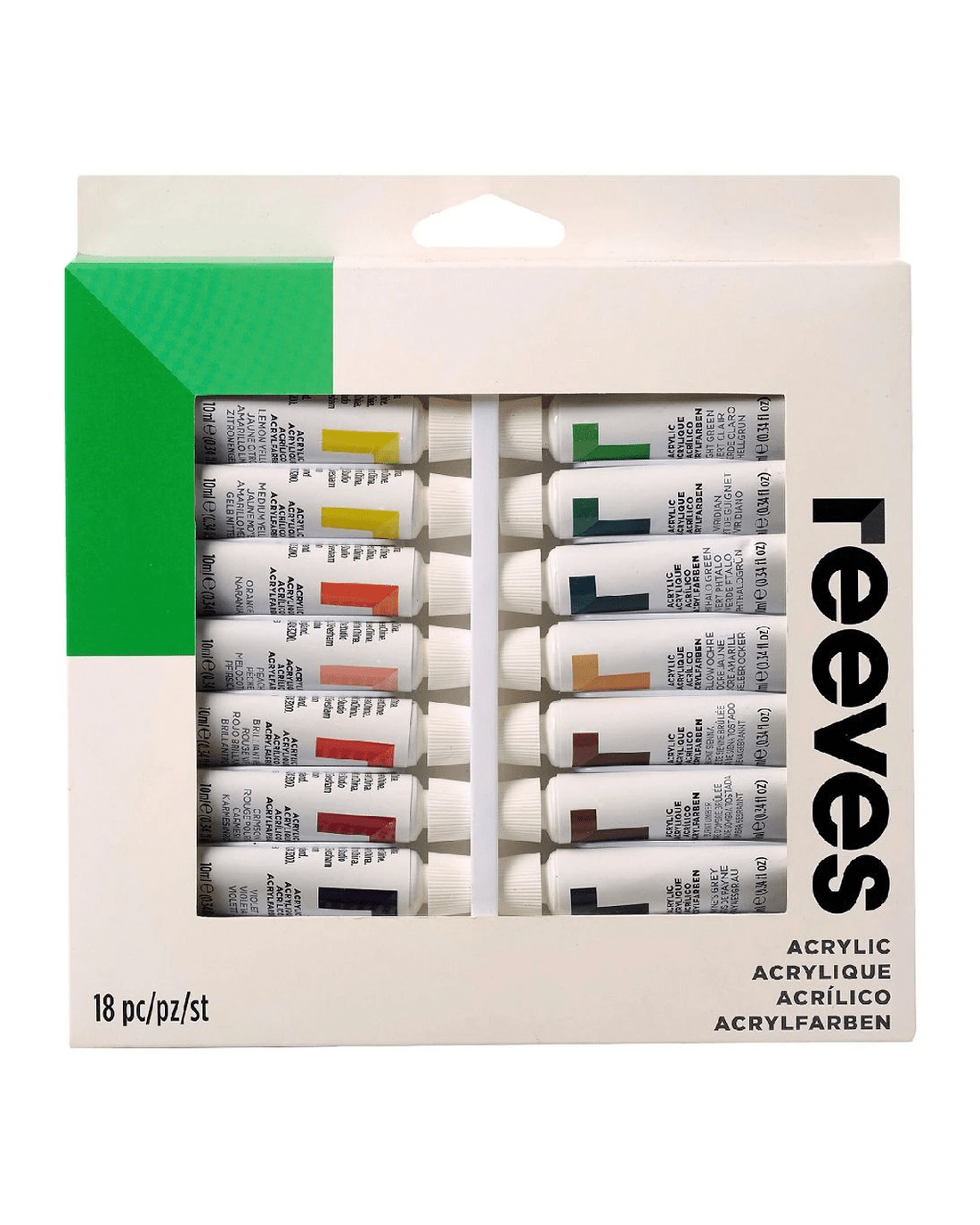 Sold by OfficeworksReeves Acrylic Colour Paint Set 12mL 18 Pack