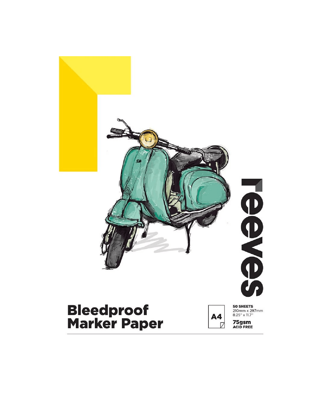 Sold by OfficeworksReeves Bleedproof Paper Pad 70gsm 50 Sheets A4