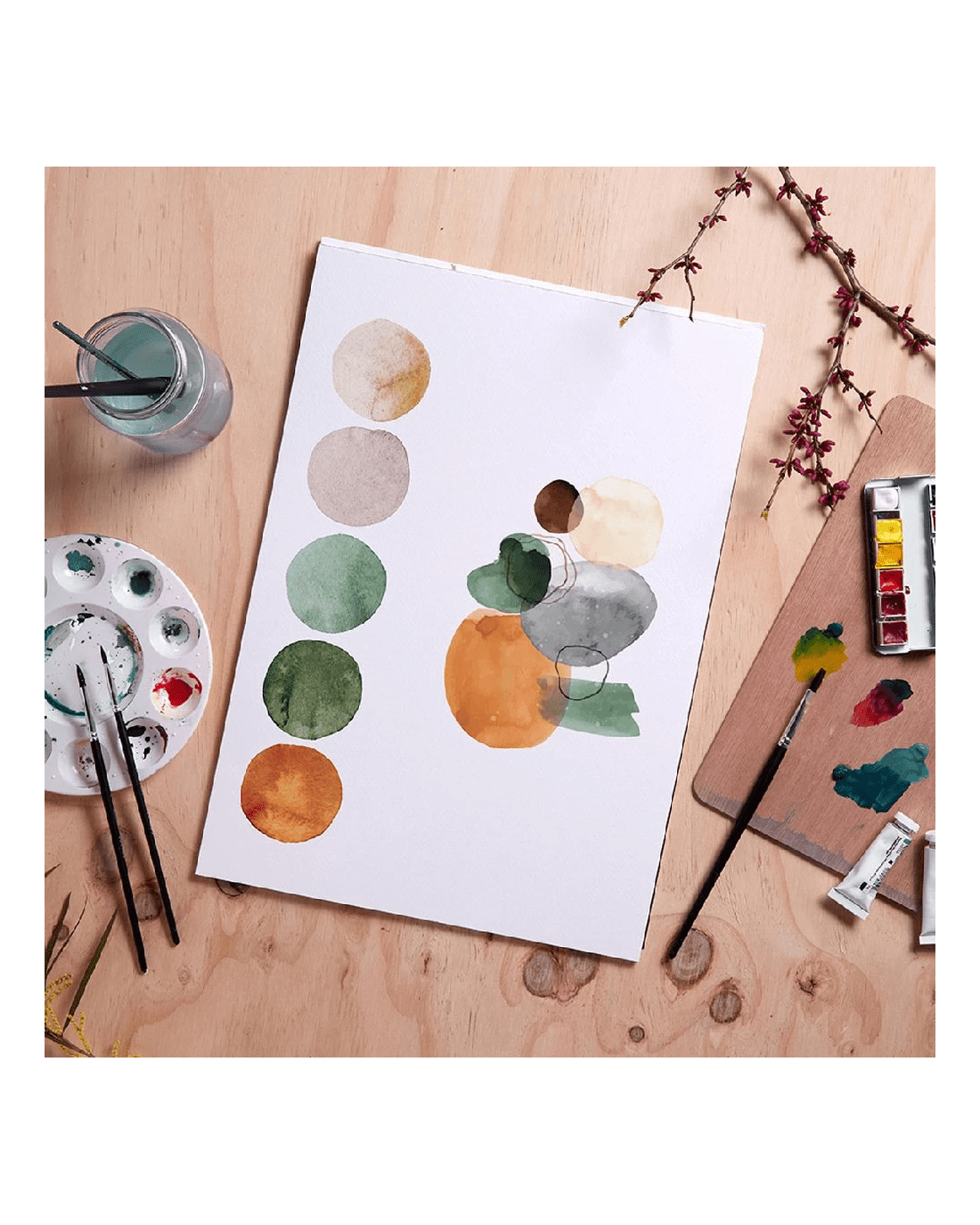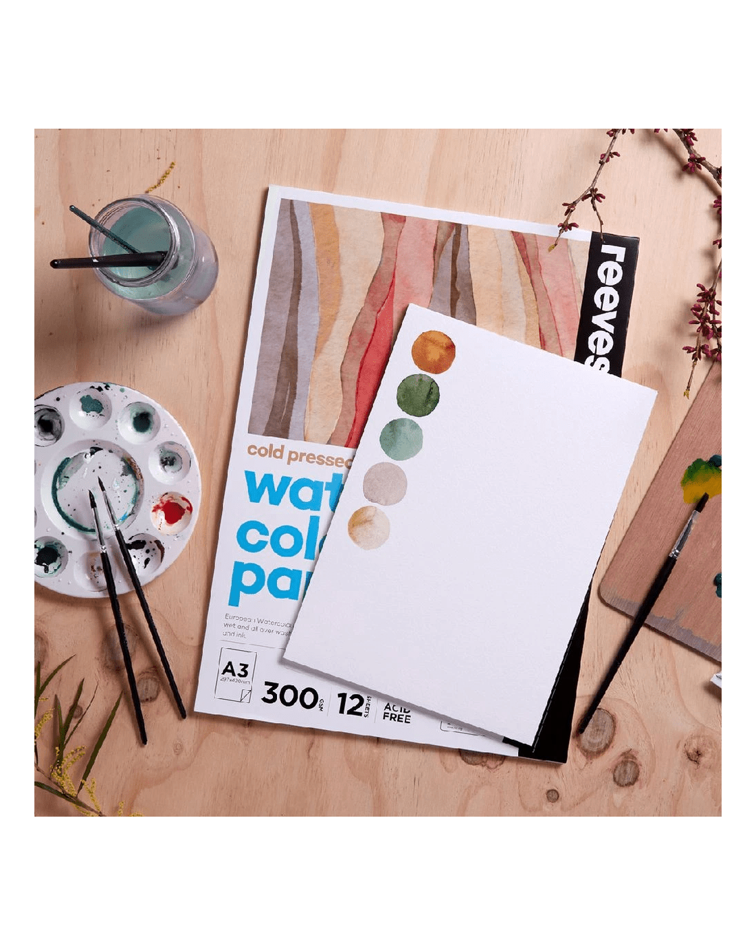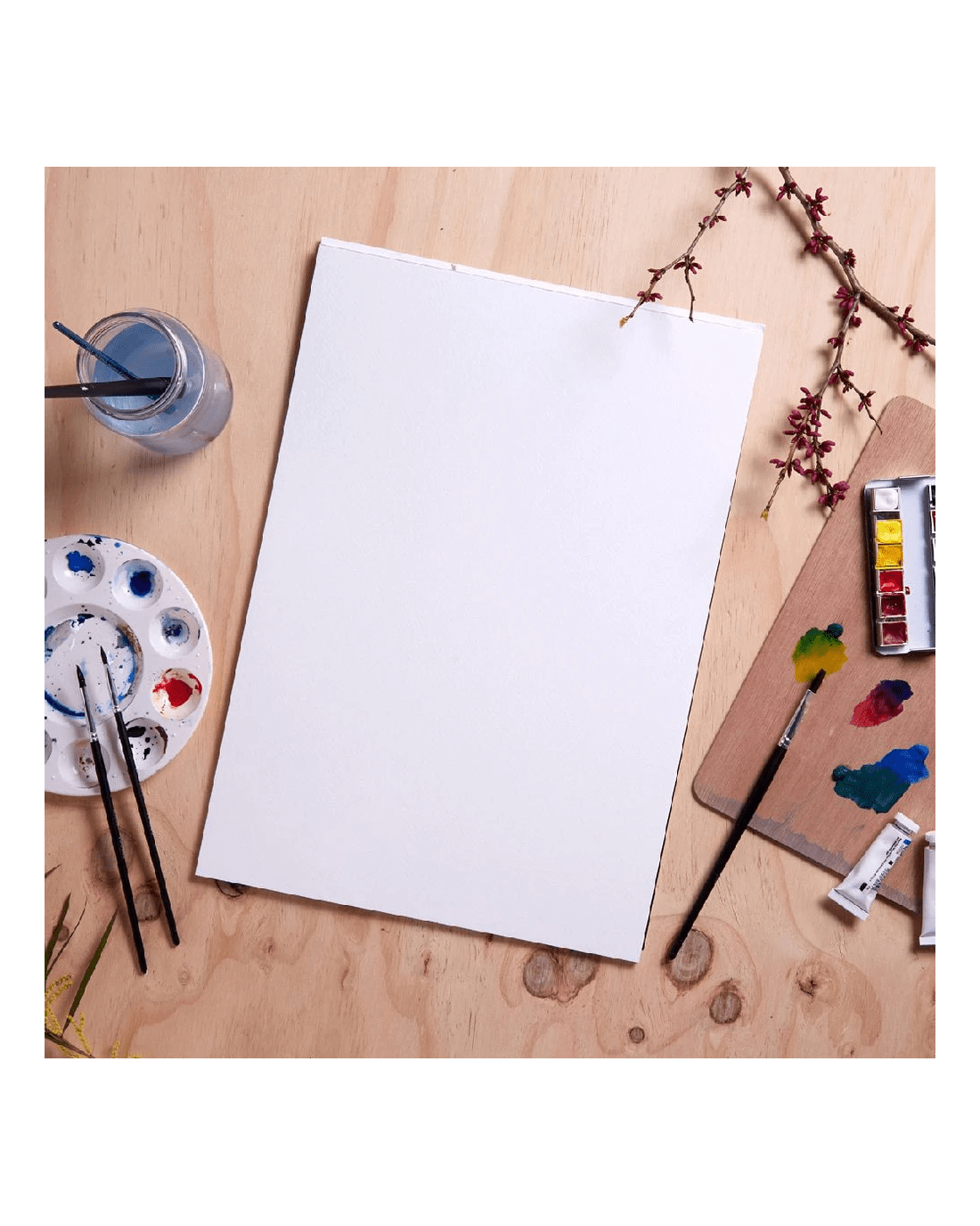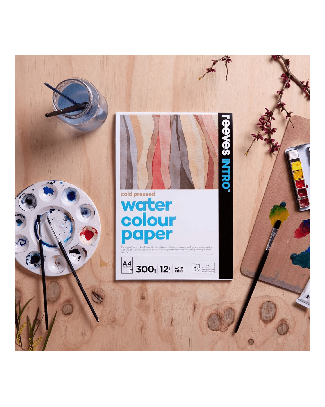 - Watercolour paints and pencils, gouache and ink can be used on this paper.