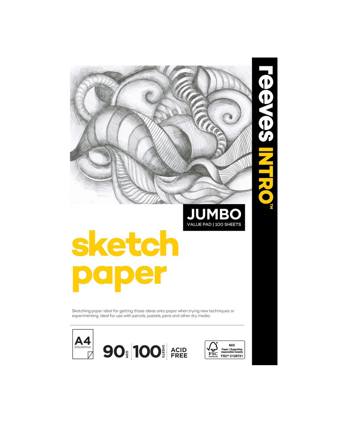 The Reeves Intro Sketch & Draw Mega Pad is perfect for artists and hobbyists looking to explore new techniques or freely express ideas. With 100 sheets of 90gsm paper, this pad is ideal for dry media like pencils, pastels, and pens, offering a smooth surface for sketching, writing, and experimenting. Its top-glued binding and sturdy cardboard backing make it easy to use whether at home, in the studio, or on the go.