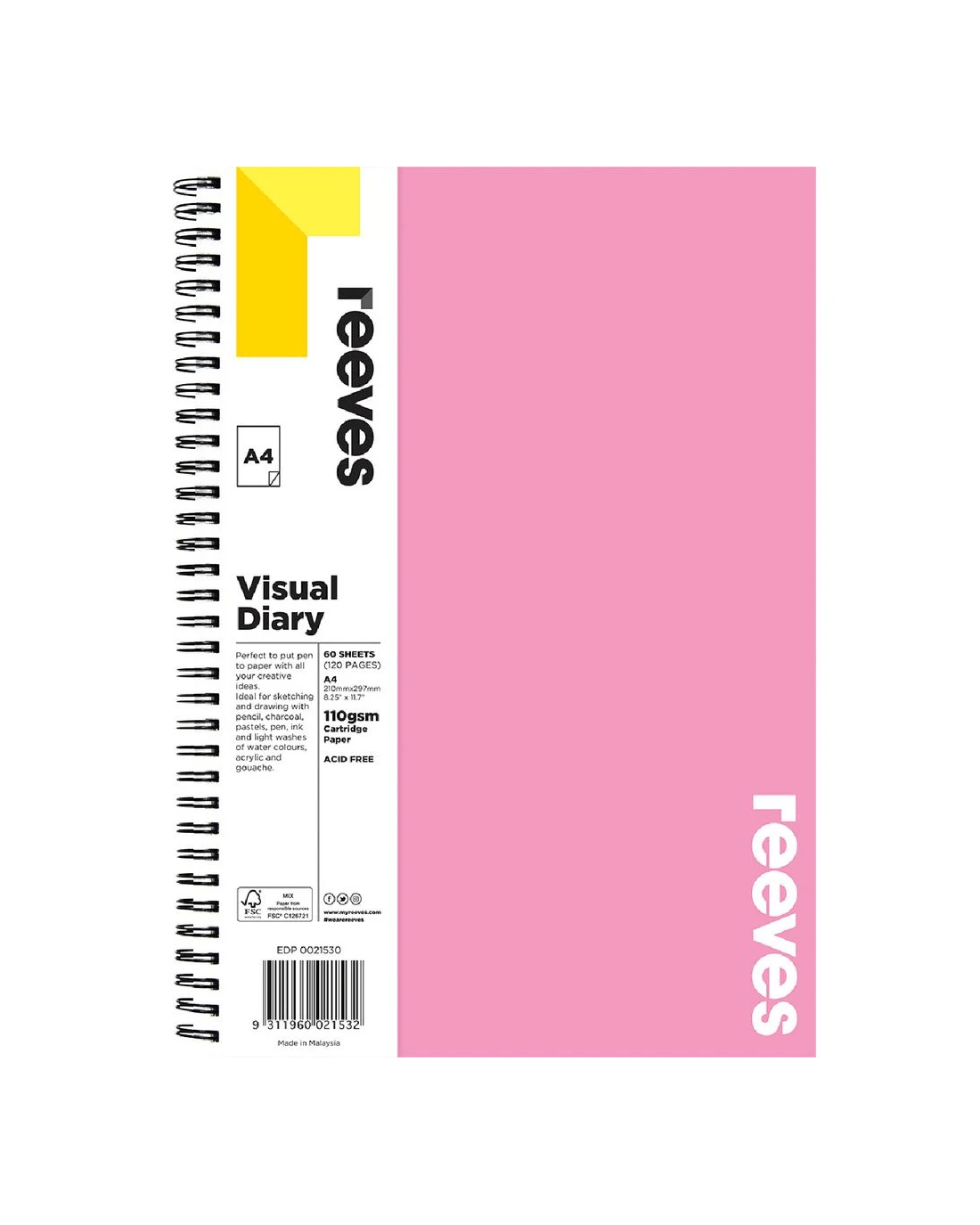 Sold by OfficeworksReeves Visual Art Diary 110gsm 60 Sheets A4 Pink