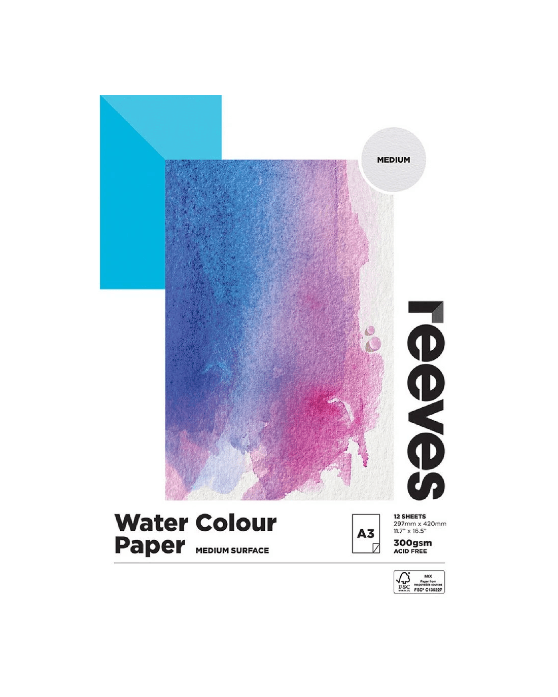 Sold by OfficeworksReeves Watercolour Pad Cold Pressed Med 300gsm 12 Sheets A3