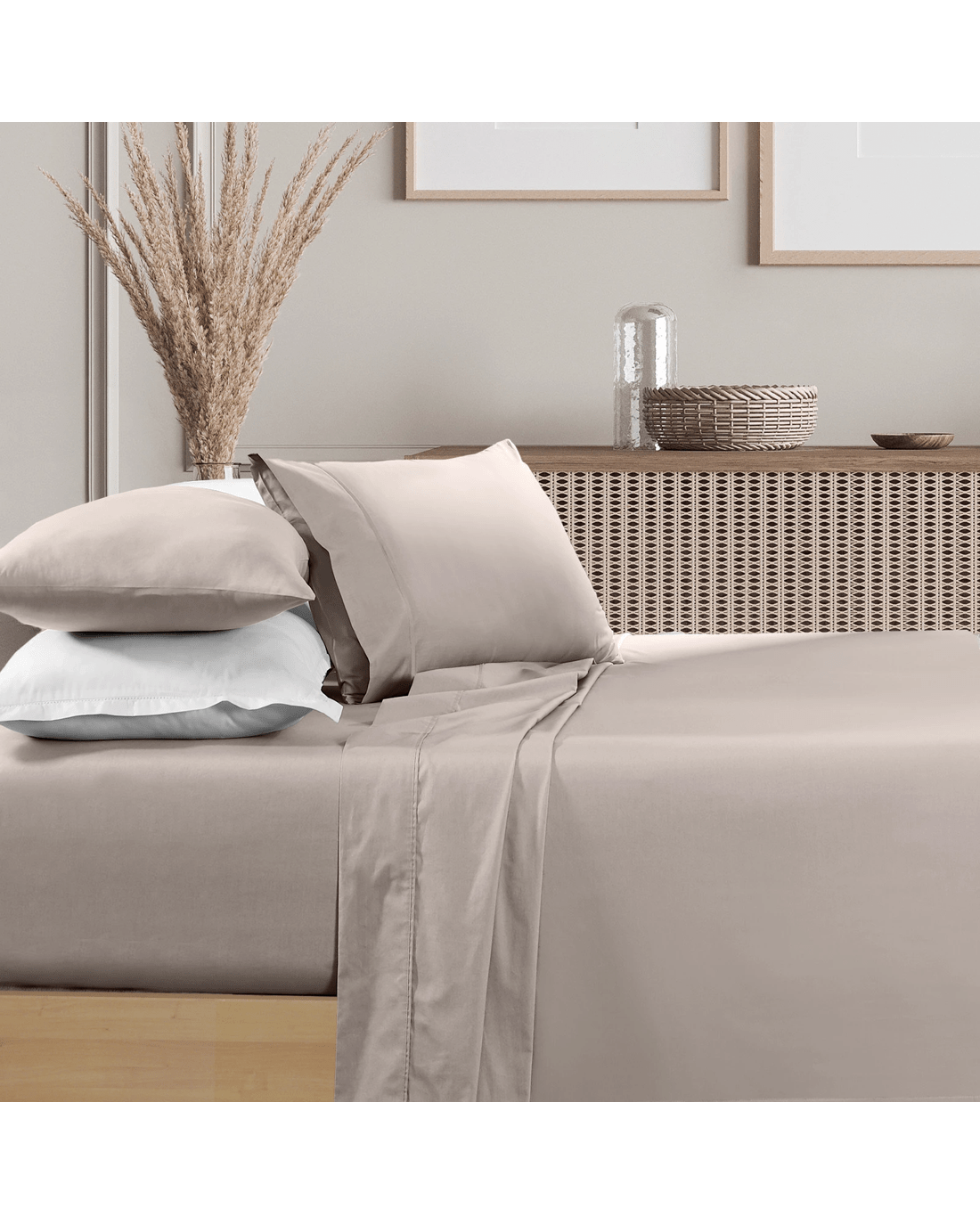 With its beautiful handle and silky feel, it is made from a luxurious blend of 60% pure soft cotton and 40% premium polyester. With a decadent 1500 thread count, the fabric is expertly woven so the cotton is on the face of the sheet set and the polyester is underneath to ensure an easy care, wrinkle-resistant finish.