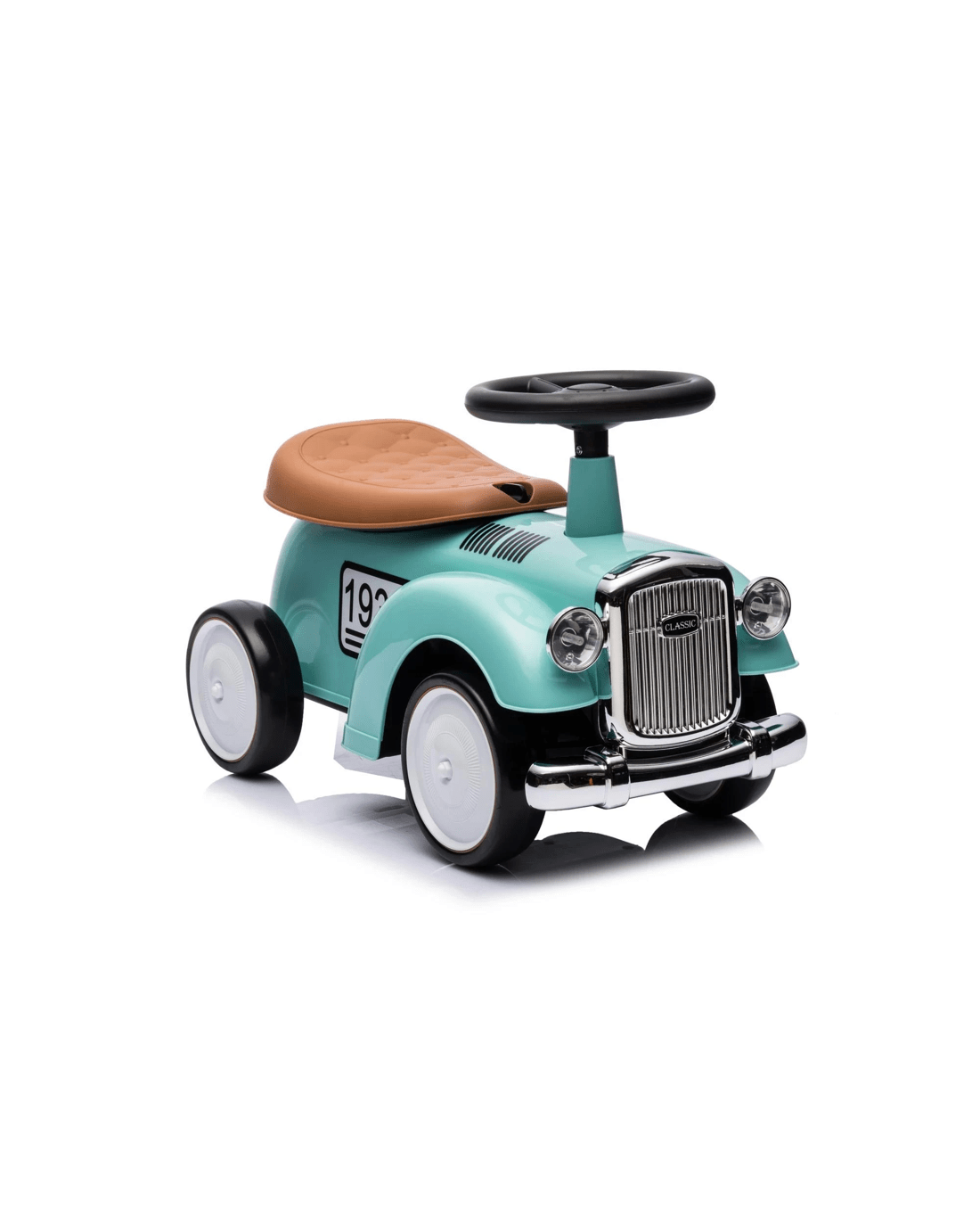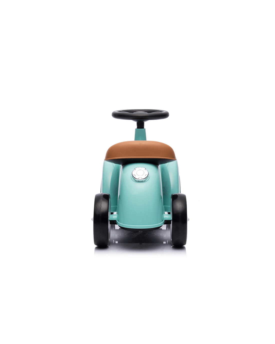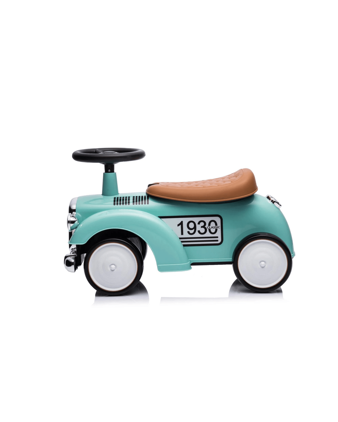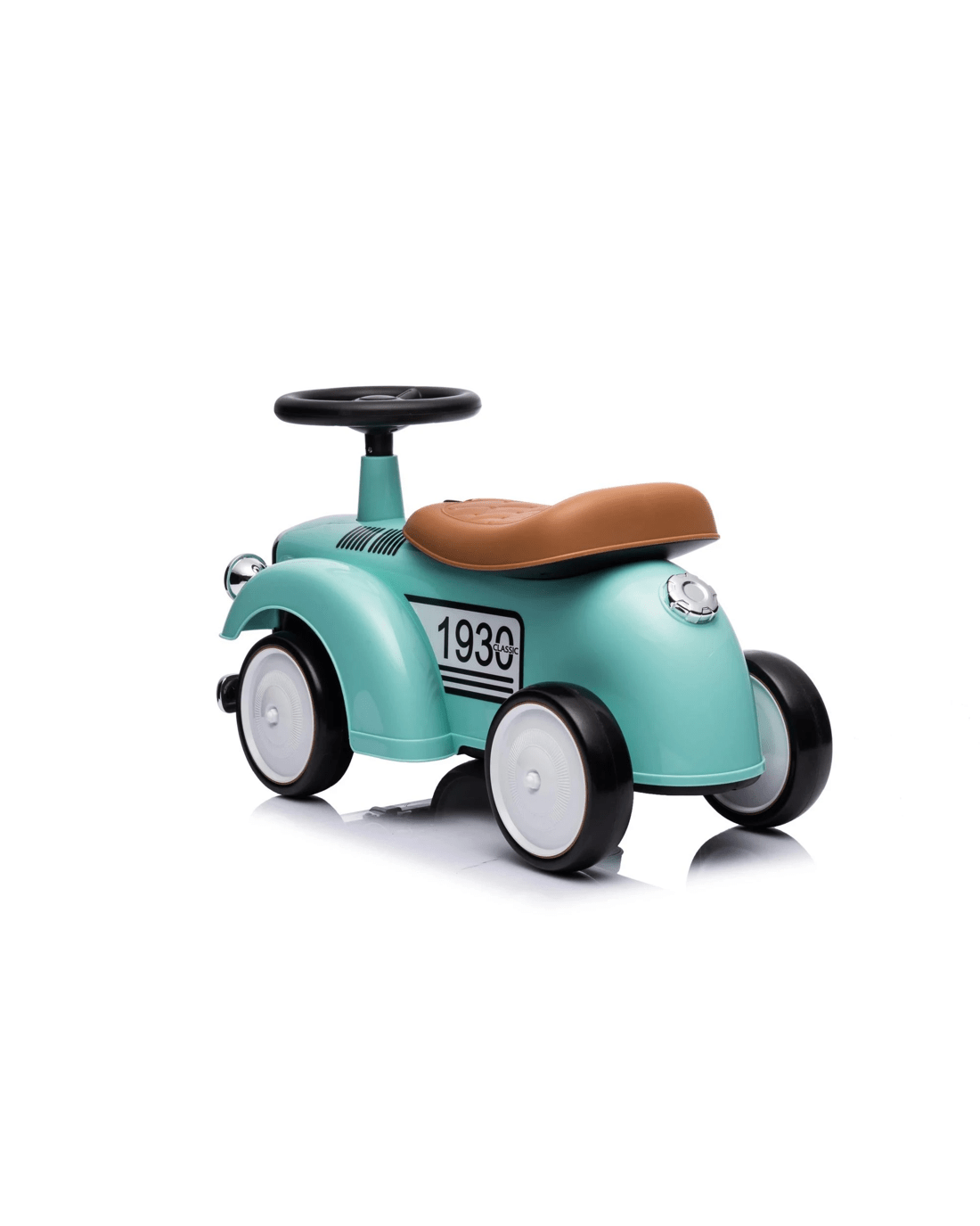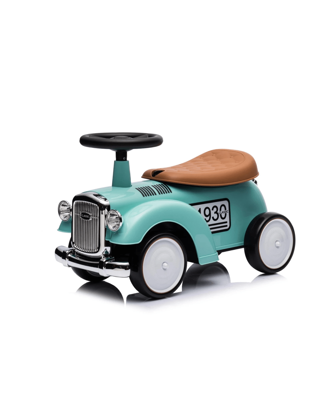 - This adorable Retro Foot to Floor Ride On is the perfect first kids’ ride-on car. Journey into a truly retro era with the shiny silver grill, bright teal colour, and brown leather-look seat.