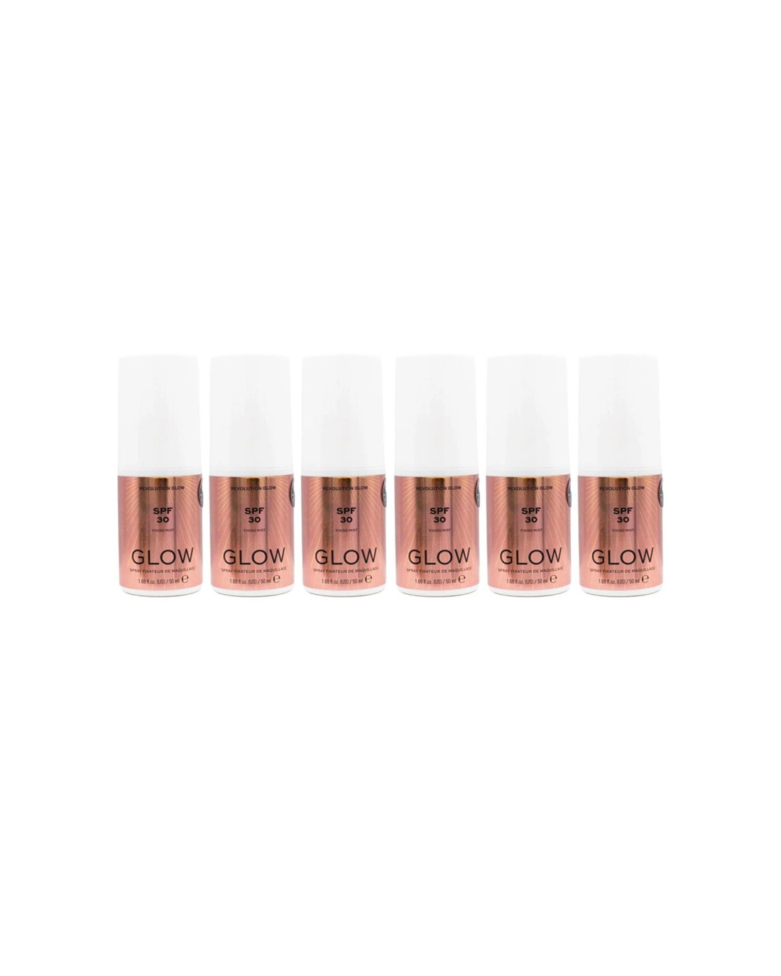 The Revolution Glow Fixing Mist Setting Spray is designed for setting and hydrating your makeup while adding a luminous glow to your skin. This pack of six lightweight sprays provides a convenient way to keep your makeup looking fresh and radiant throughout the day.