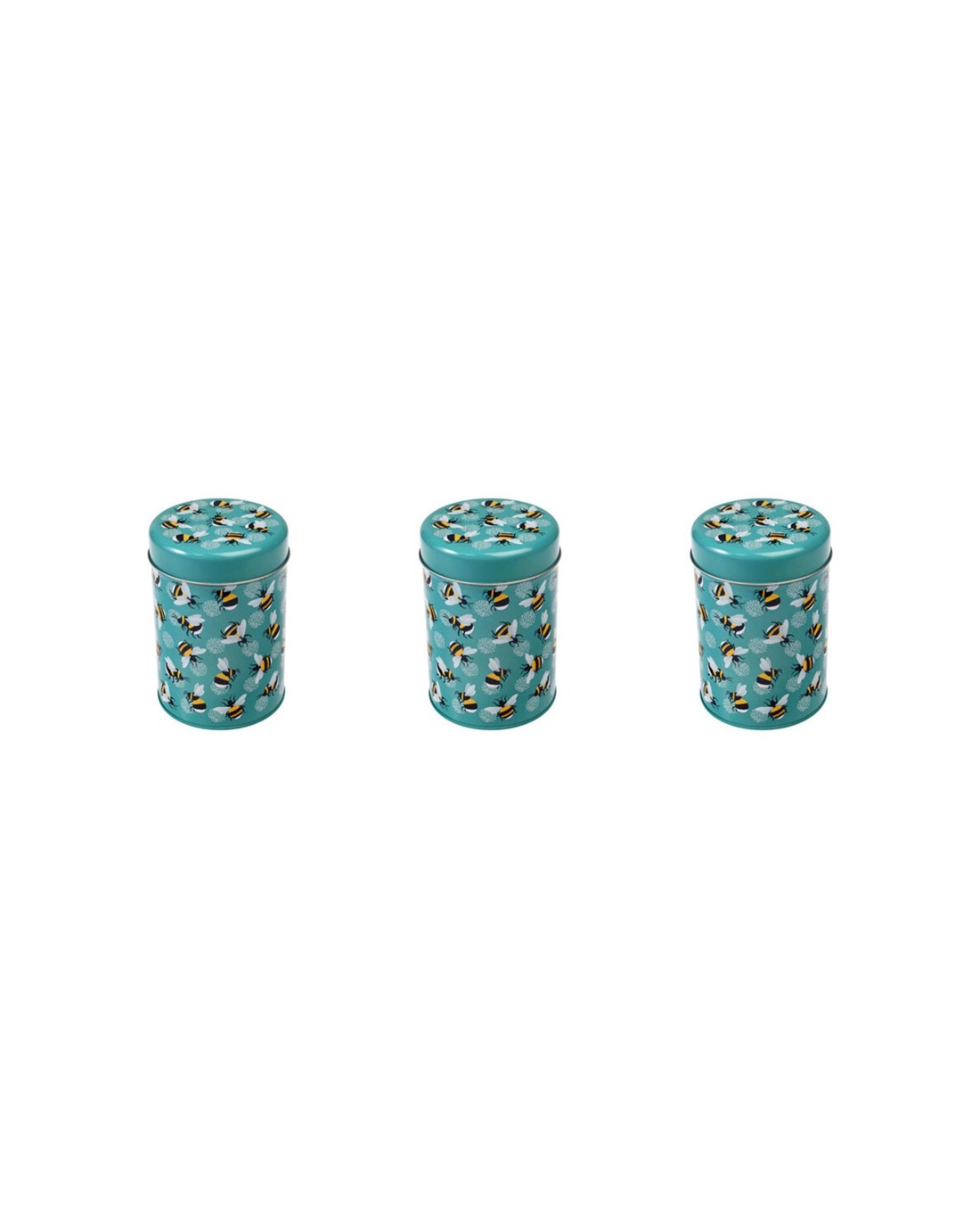 Sold by KG SuperStoreRex London 3PK Metal Canister Tin Round 10.5cm Bumblebee Durable Storage - Multi