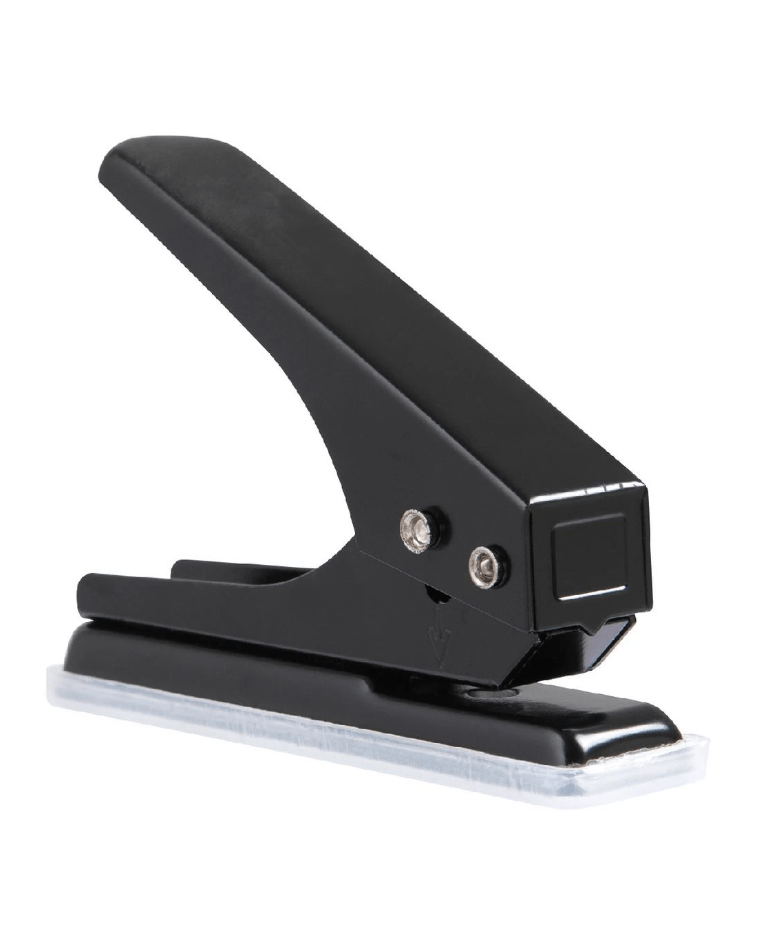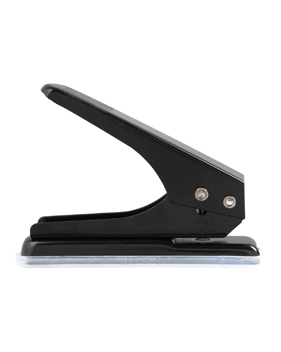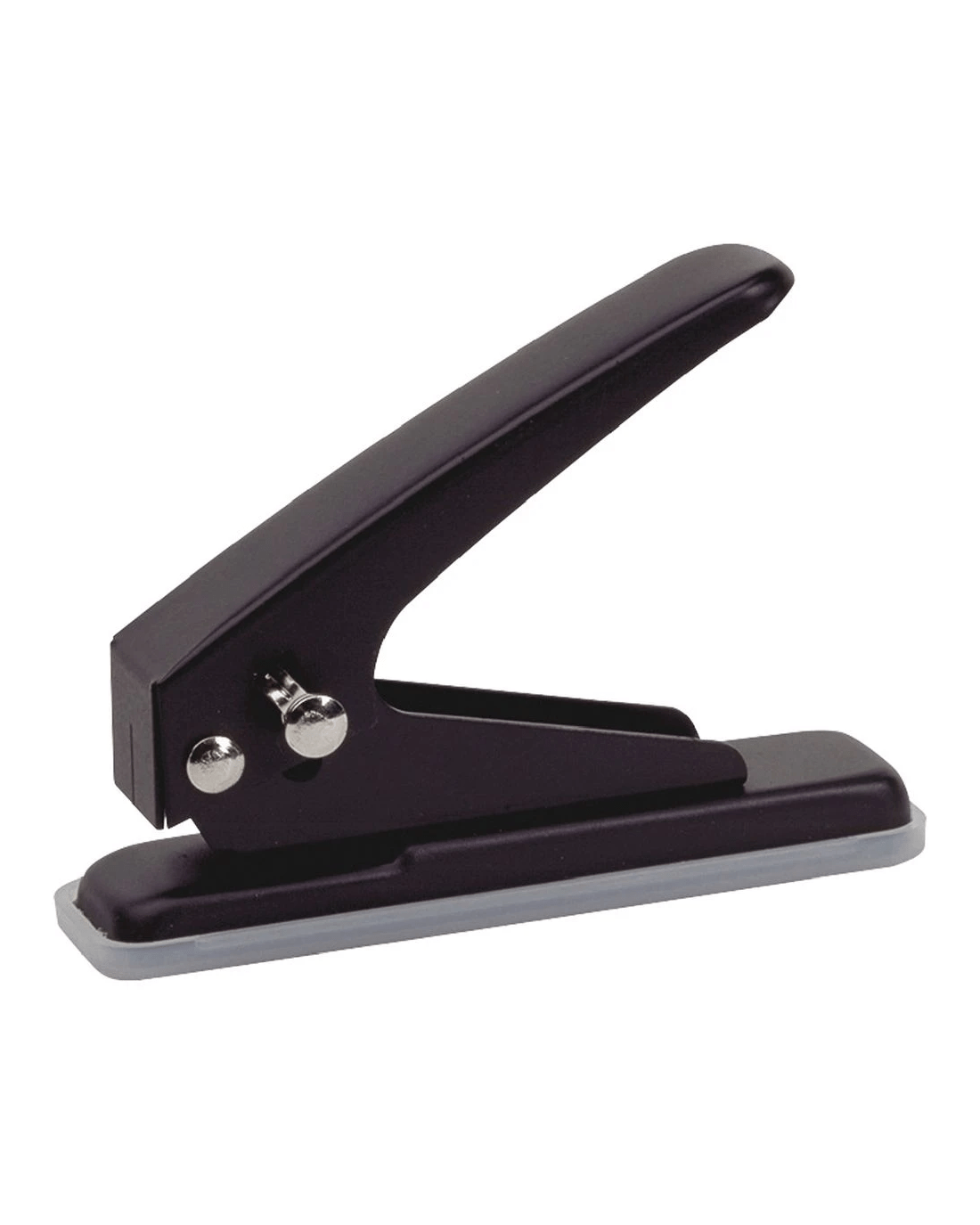 The Rexel 1 Hole Punch is an easy to use tool that will help you to get your documents in order. This punch creates 6 mm holes and catches all the paper cuttings in a tray on its base. The lever locks down for compact storage, and the base has a non-slip surface to keep it in place.