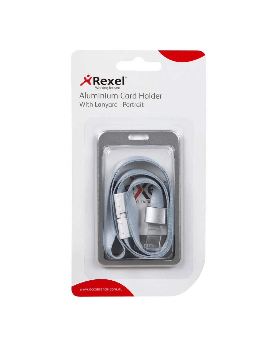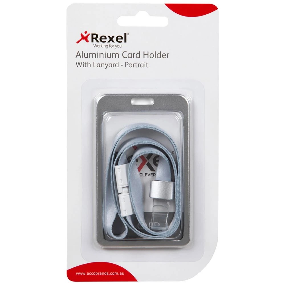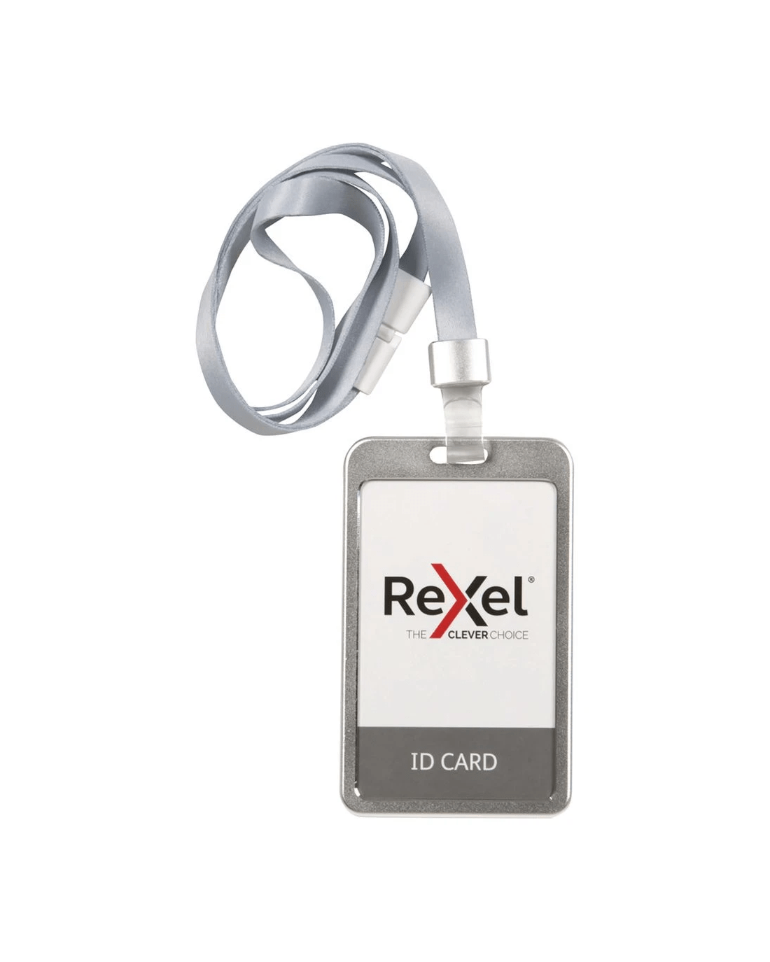 Rexel Aluminium Card Holder Portrait with Lanyard Silver