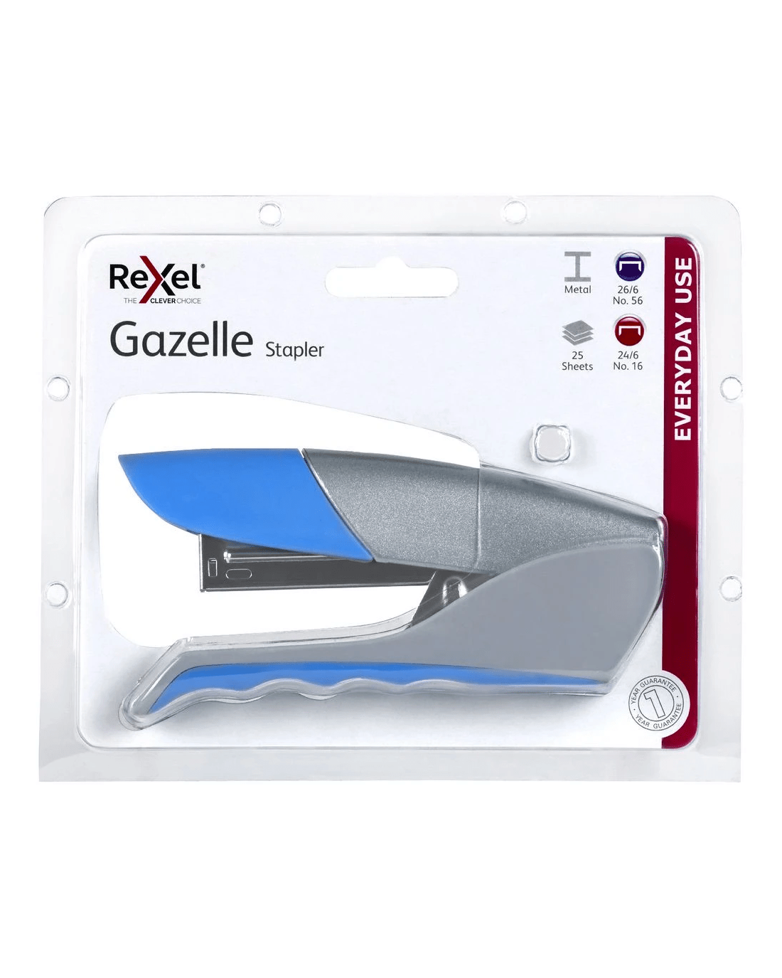 The Rexel Gazelle Stapler is perfect for use in your workspace and designed for stapling, pinning and tacking of documents and files. It can staple up to 25 sheets at a time and has a metal construction for long lasting use.