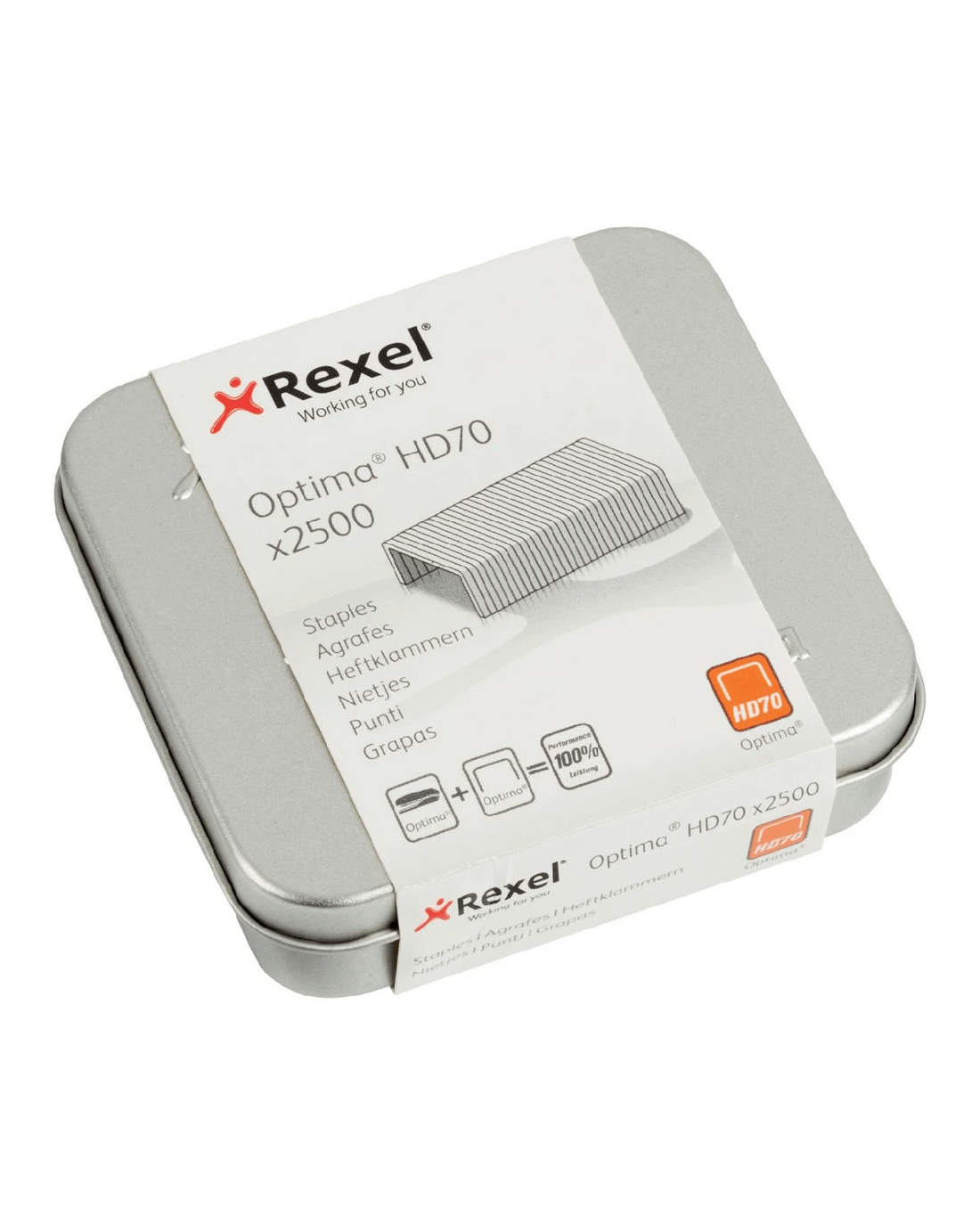 These Rexel Optima Heavy Duty Staples are manufactured from a high quality steel to give them long lasting durability. These staples have pointed legs which means that they will easily penetrate up to 70 sheets when used with Rexel Optima 70 staplers. The come in a professional, secure tin which allows you to easily store and access your staples.