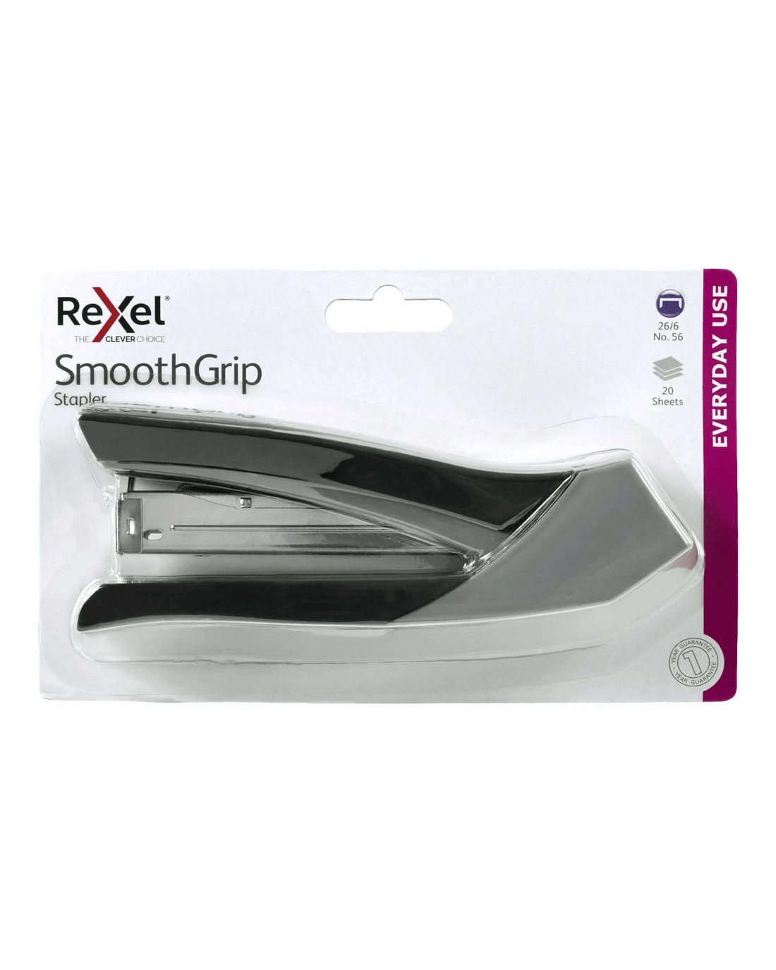 This Rexel SmoothGrip Stapler is designed to be comfortable to hold and use. It has a smooth outer surface and a lightweight construction so you can easily manoeuvre it into the right spot to secure your papers.